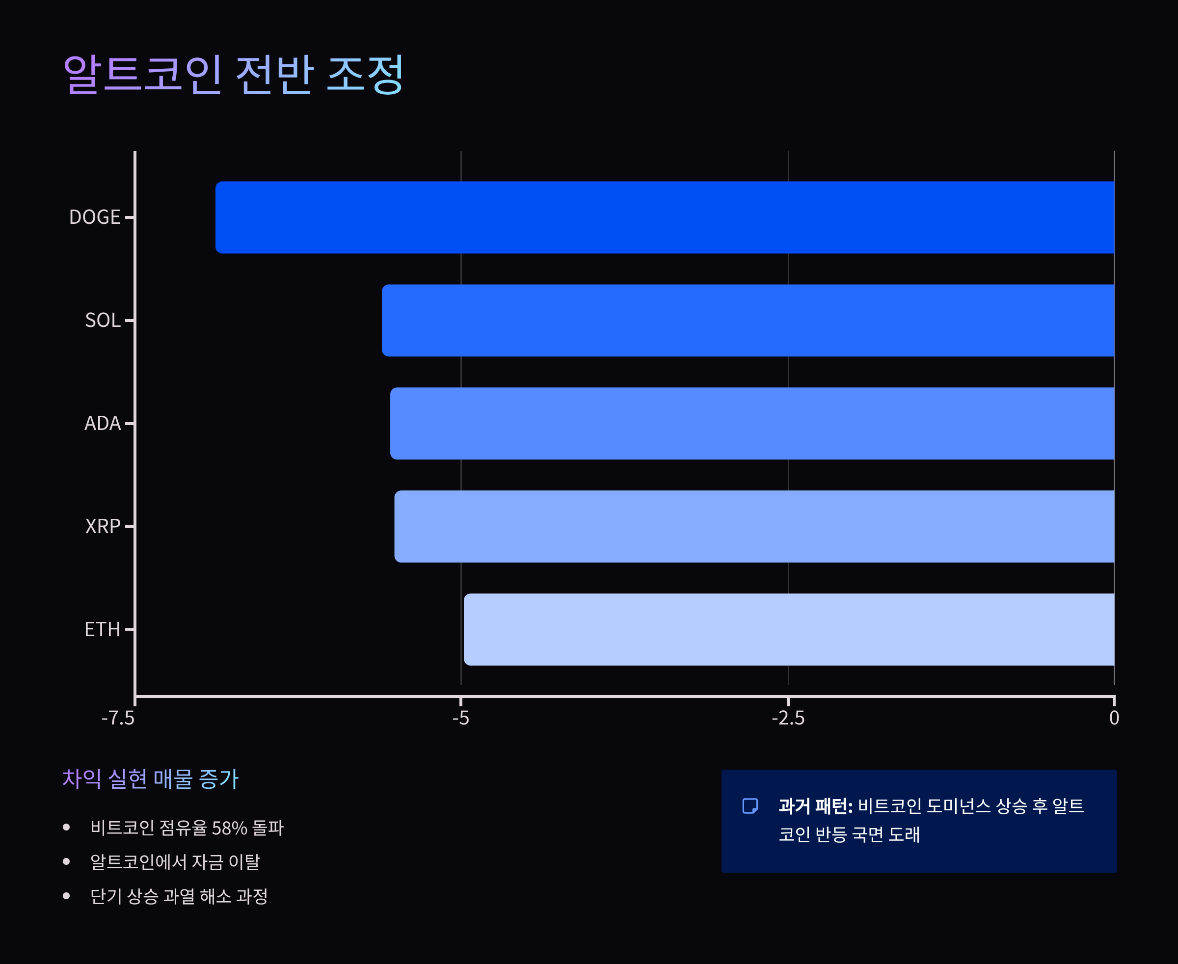 - 알트코인 전반의 차익실현, 조정의 신호