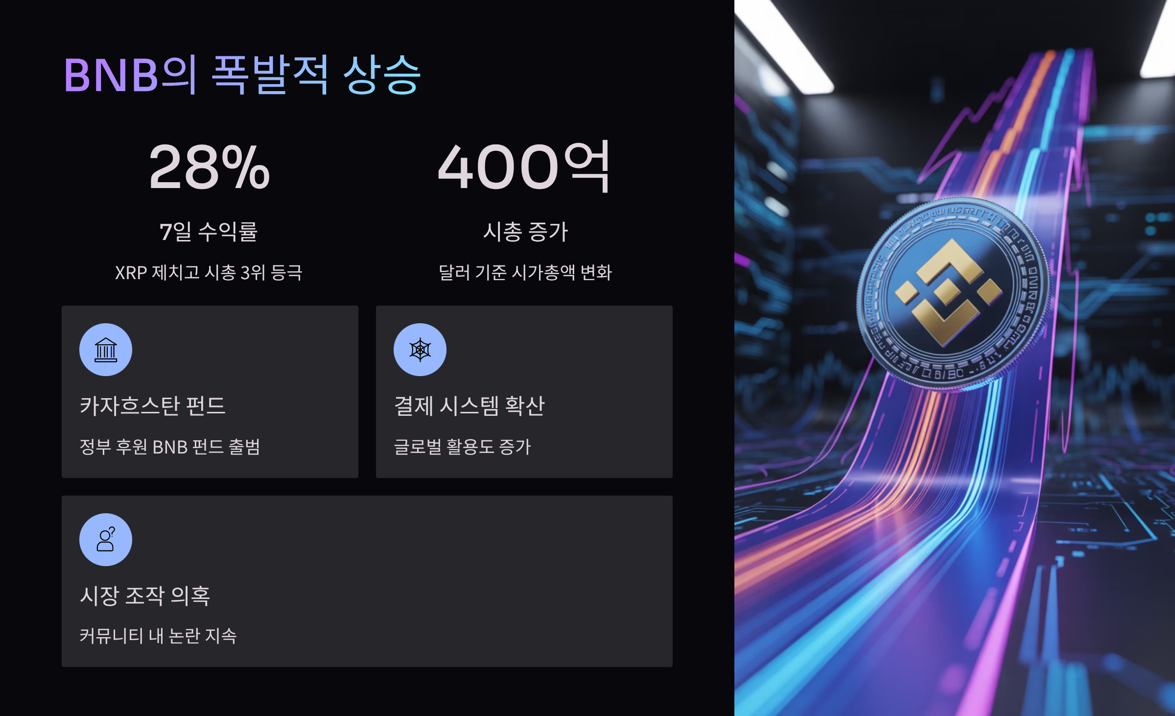 - BNB의 폭발적 상승 배경과 시장 논란