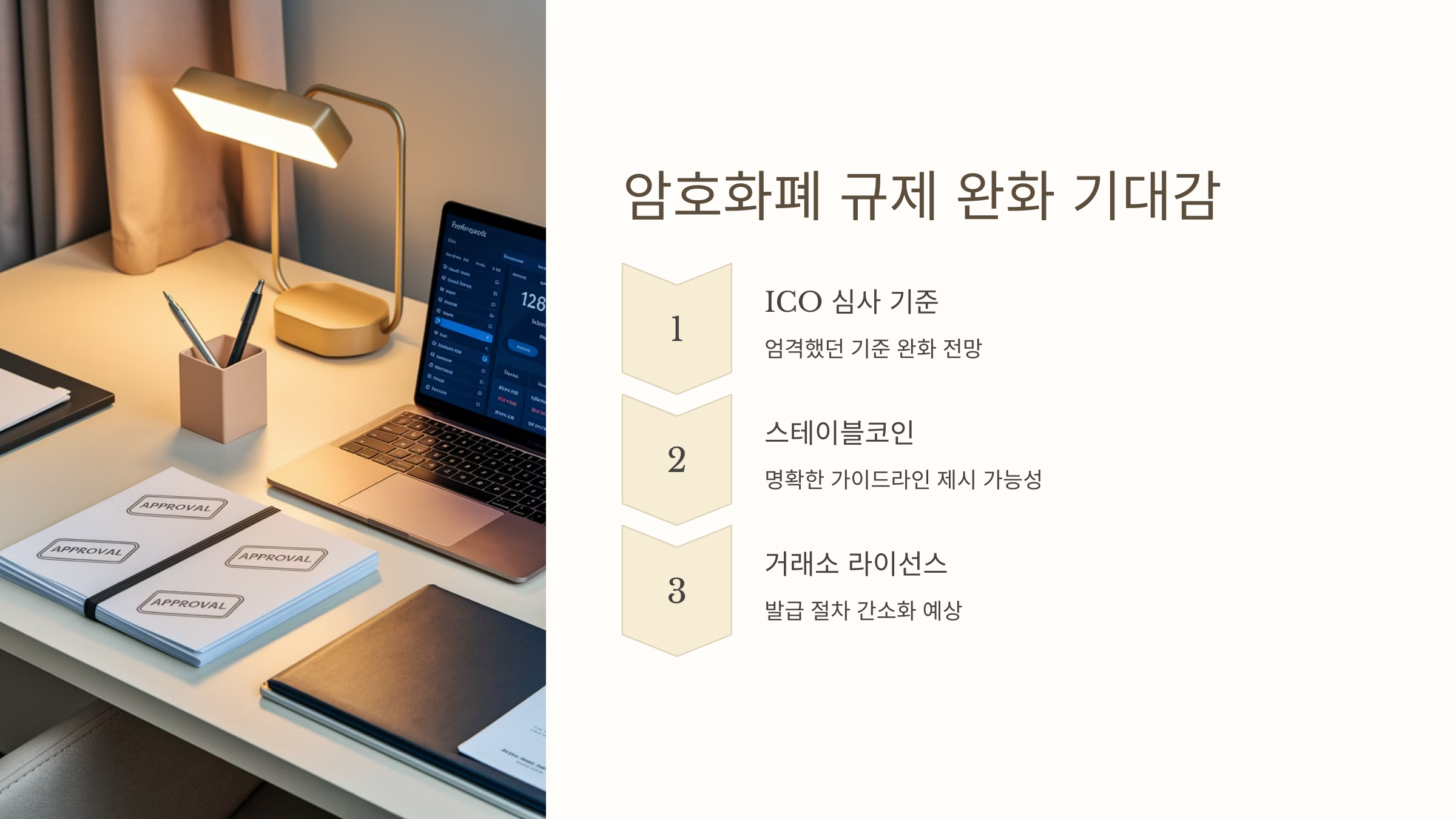 기존의 엄격했던 ICO 심사 기준이나 스테이블코인 규제도 완화될 것이라는 전망이 나옵니다.