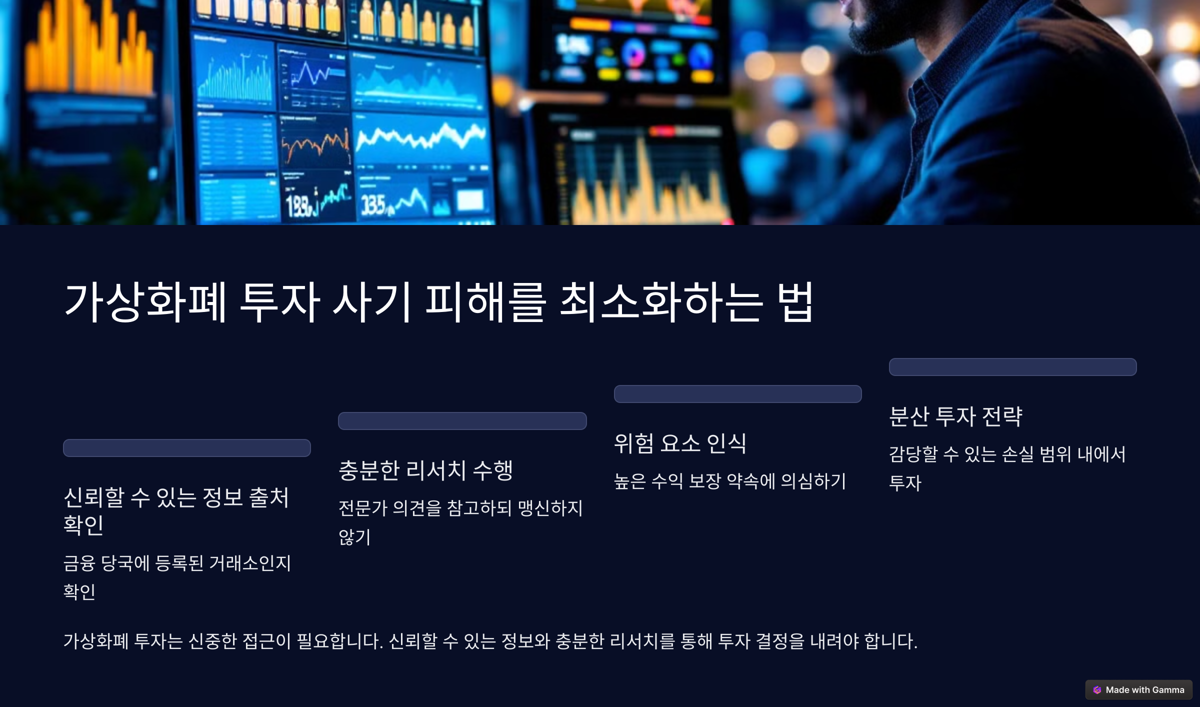 가상화폐 투자에서의 안전함은 선택이 아닌 필수입니다. 이번 글에서 소개한 다양한 피해 유형과 그에 대한 예방 방법, 안전한 거래소 선택 기준을 기억하신다면, 여러분의 투자 여정은 더욱 확고해질 것입니다.