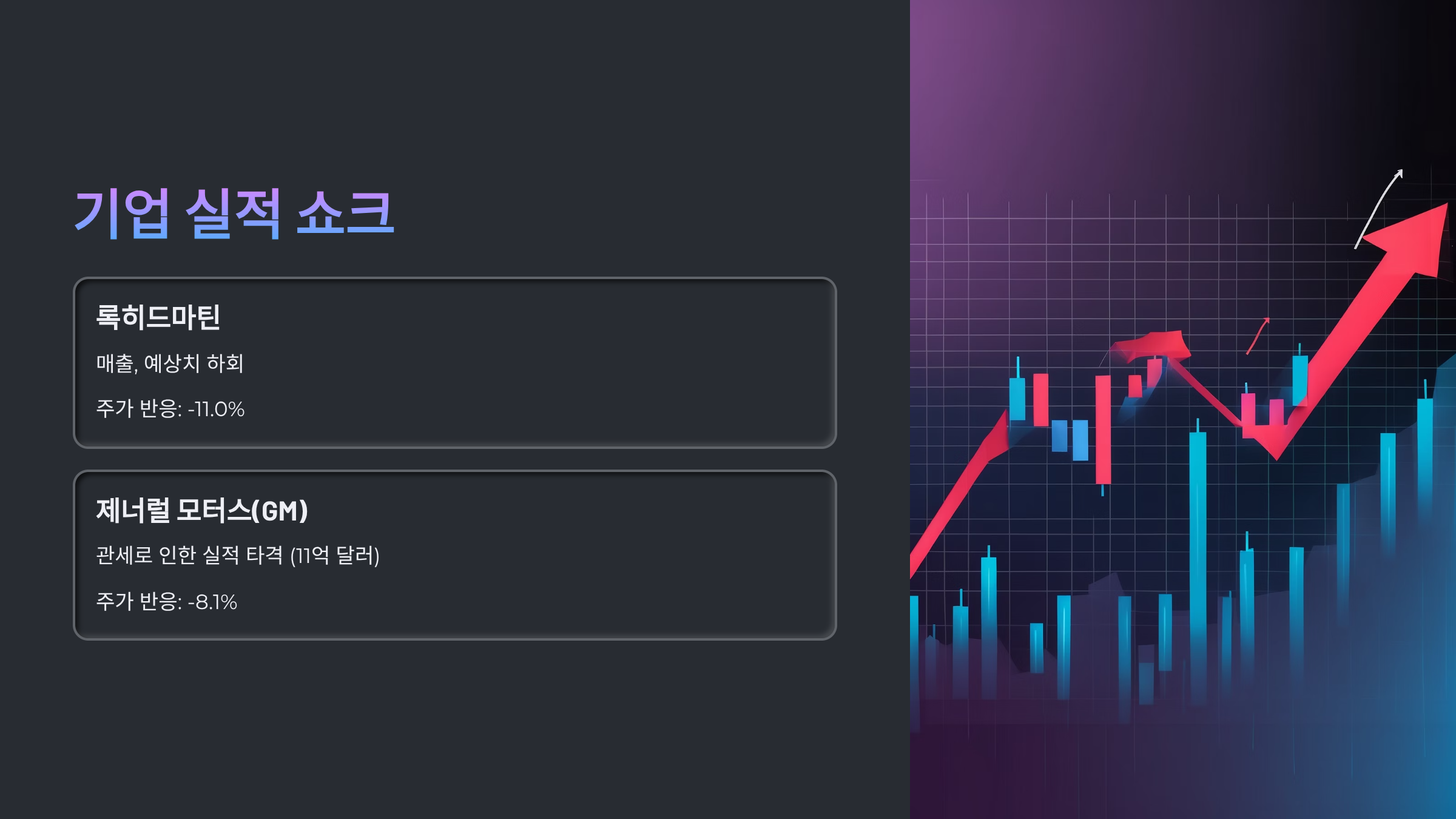| 제너럴 모터스(GM) | 관세로 인한 실적 타격 (11억 달러) | -8.1% |