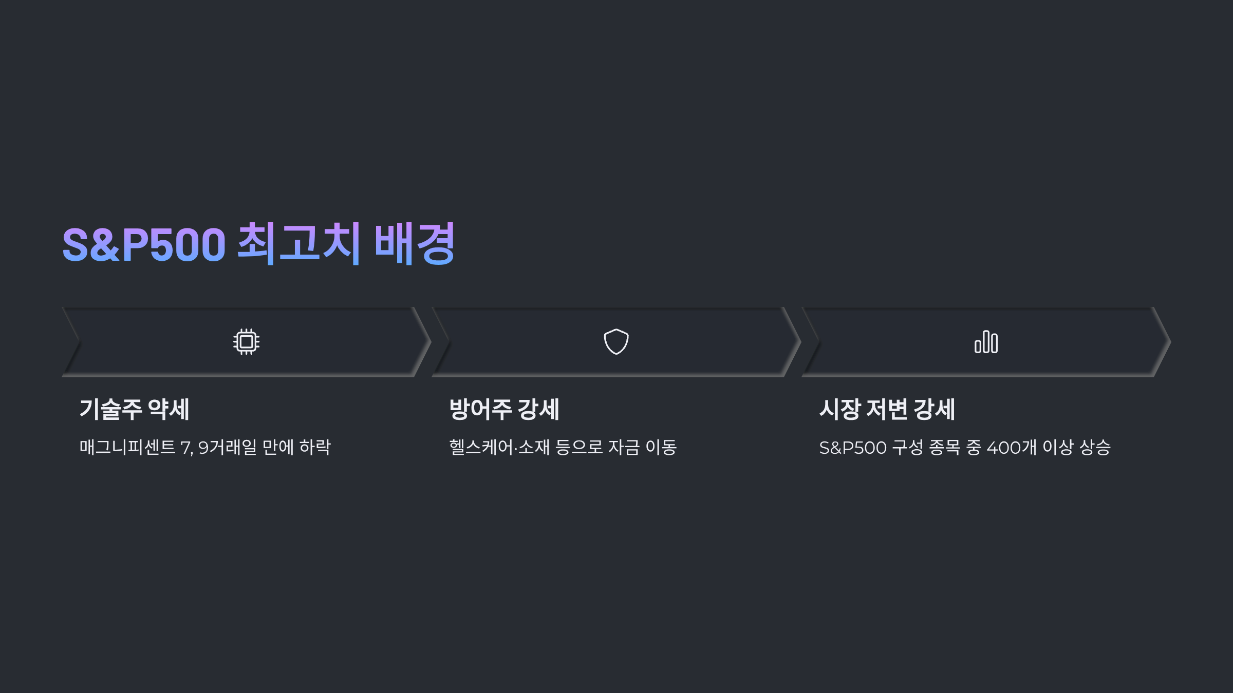 1. 기술주 약세와 방어주의 힘, S&P500 최고치 배경