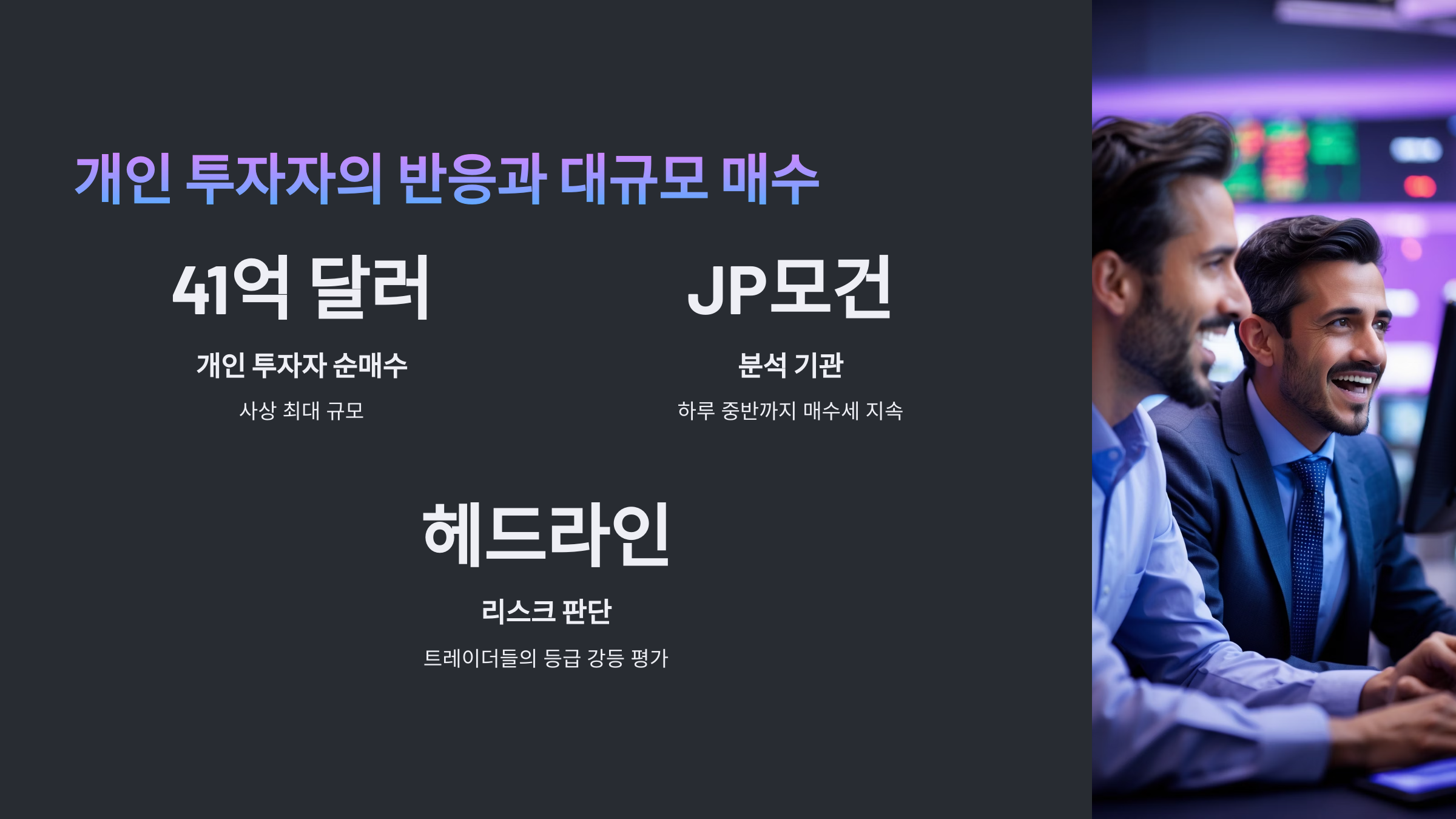 - 개인 투자자 순매수 규모: 41억 달러 (사상 최대)