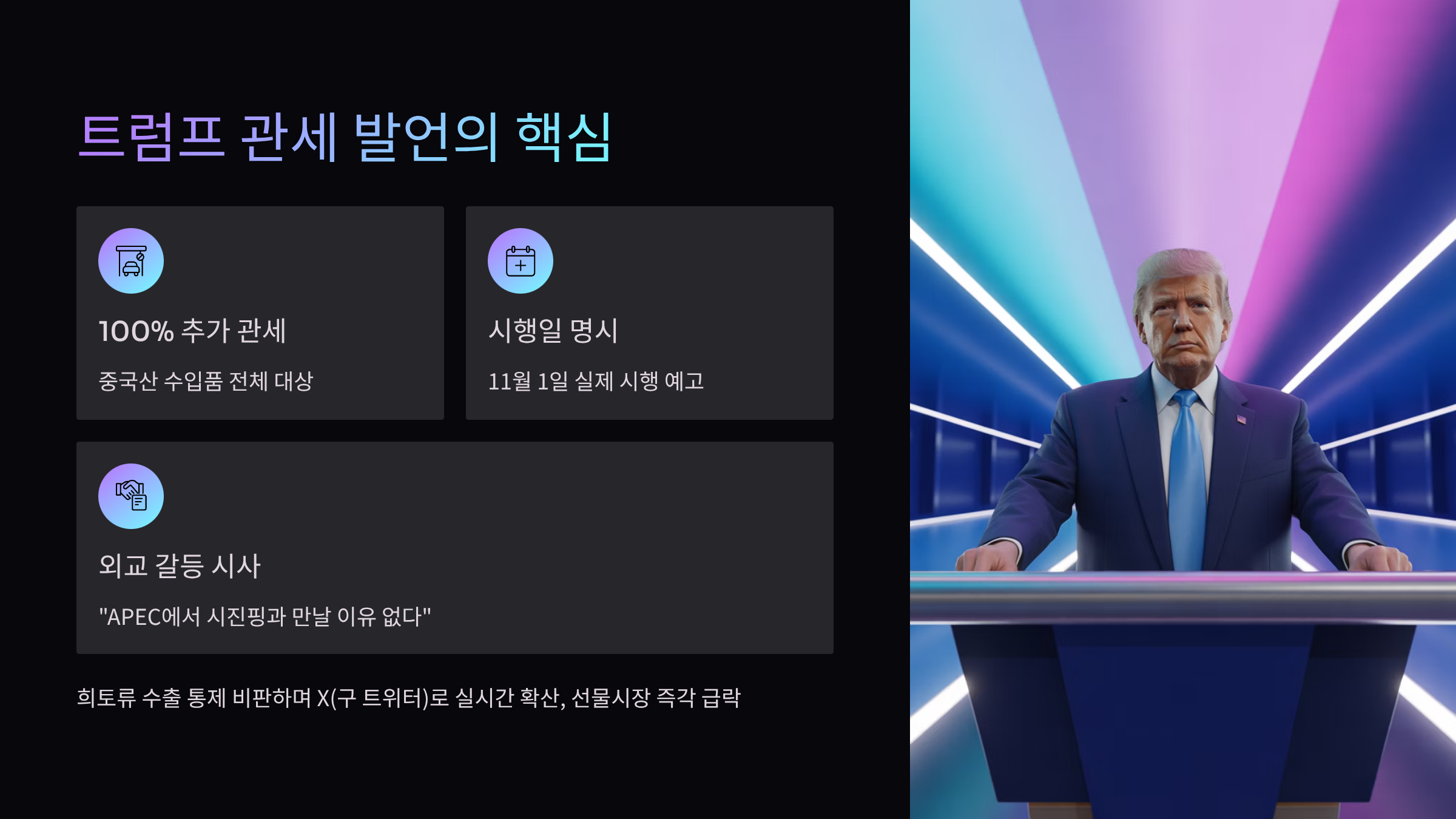 트럼프 대통령은 중국의 ‘희토류 수출 통제’를 강하게 비판하며