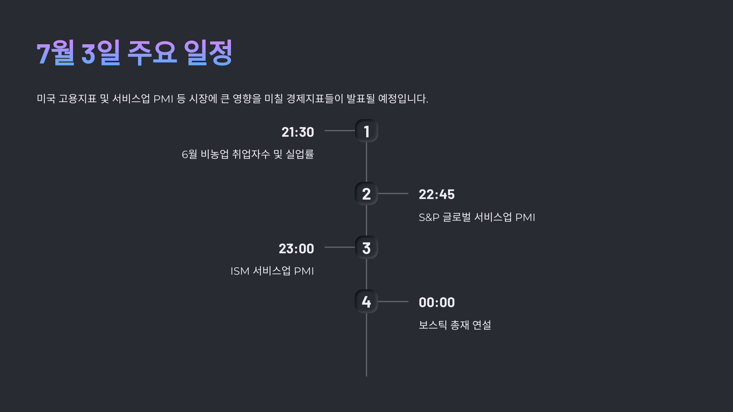 7월 3일에는 미국 고용지표 및 서비스업 PMI 등