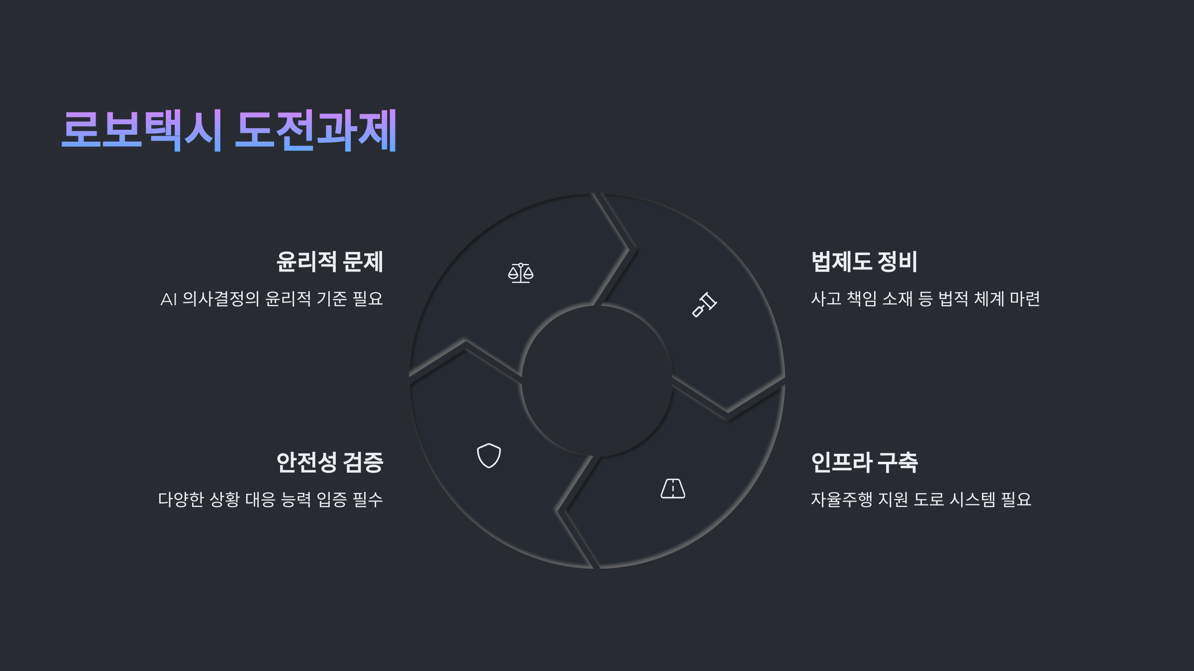 - 도전과제: 윤리 문제, 법제도, 인프라, 안전 기준