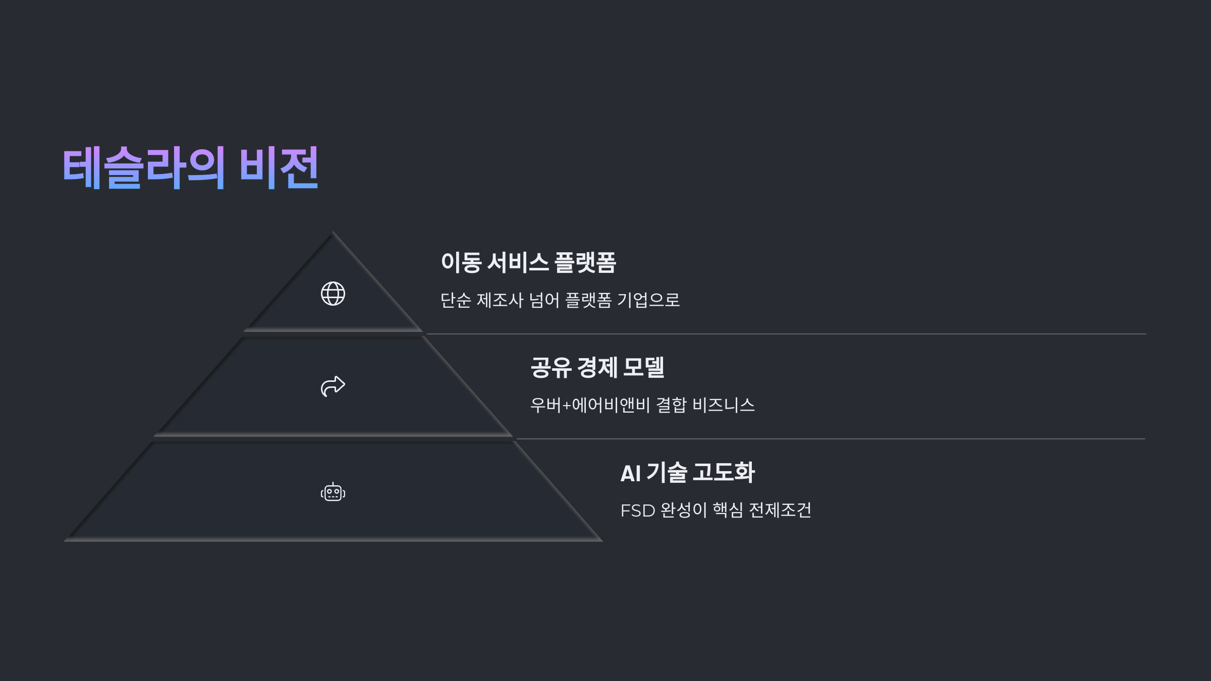 - 로보택시는 개인 소유 → 공유 플랫폼 등록 → 자동 수익화 구조