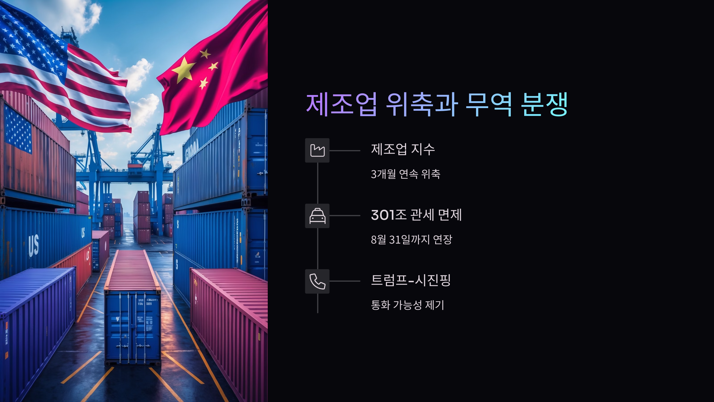 무역과 제조업 이슈도 시장의 주요 변수로 작용하고 있습니다.