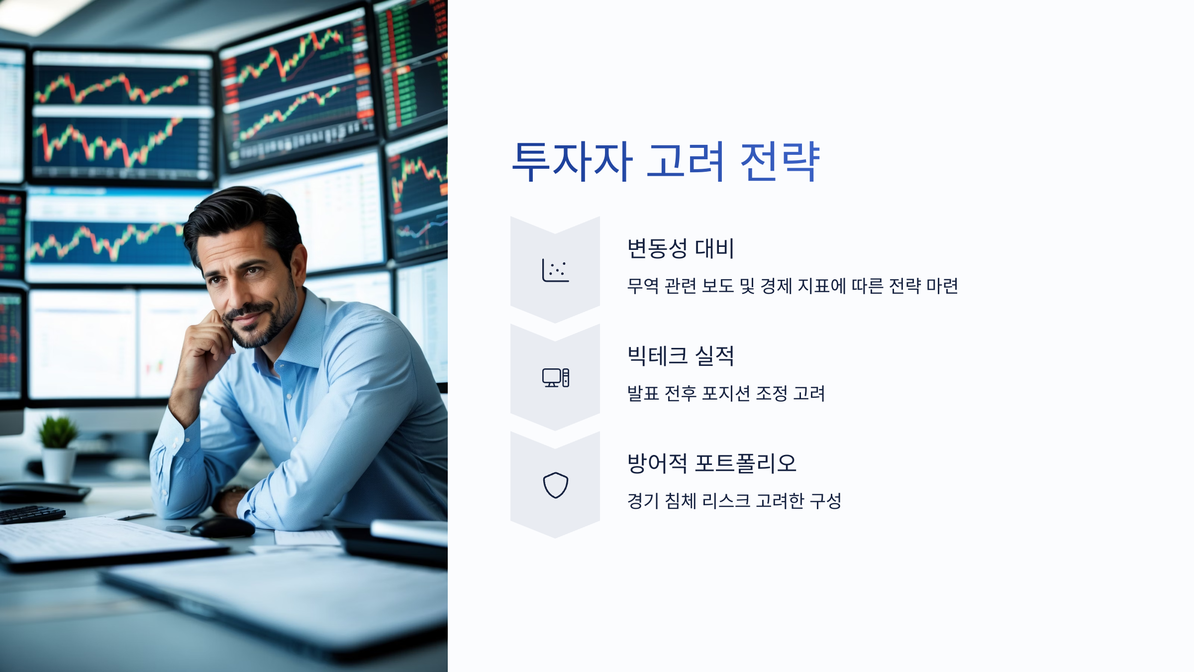 - 무역 관련 보도 및 경제 지표 결과에 따른 변동성 대비 전략 마련