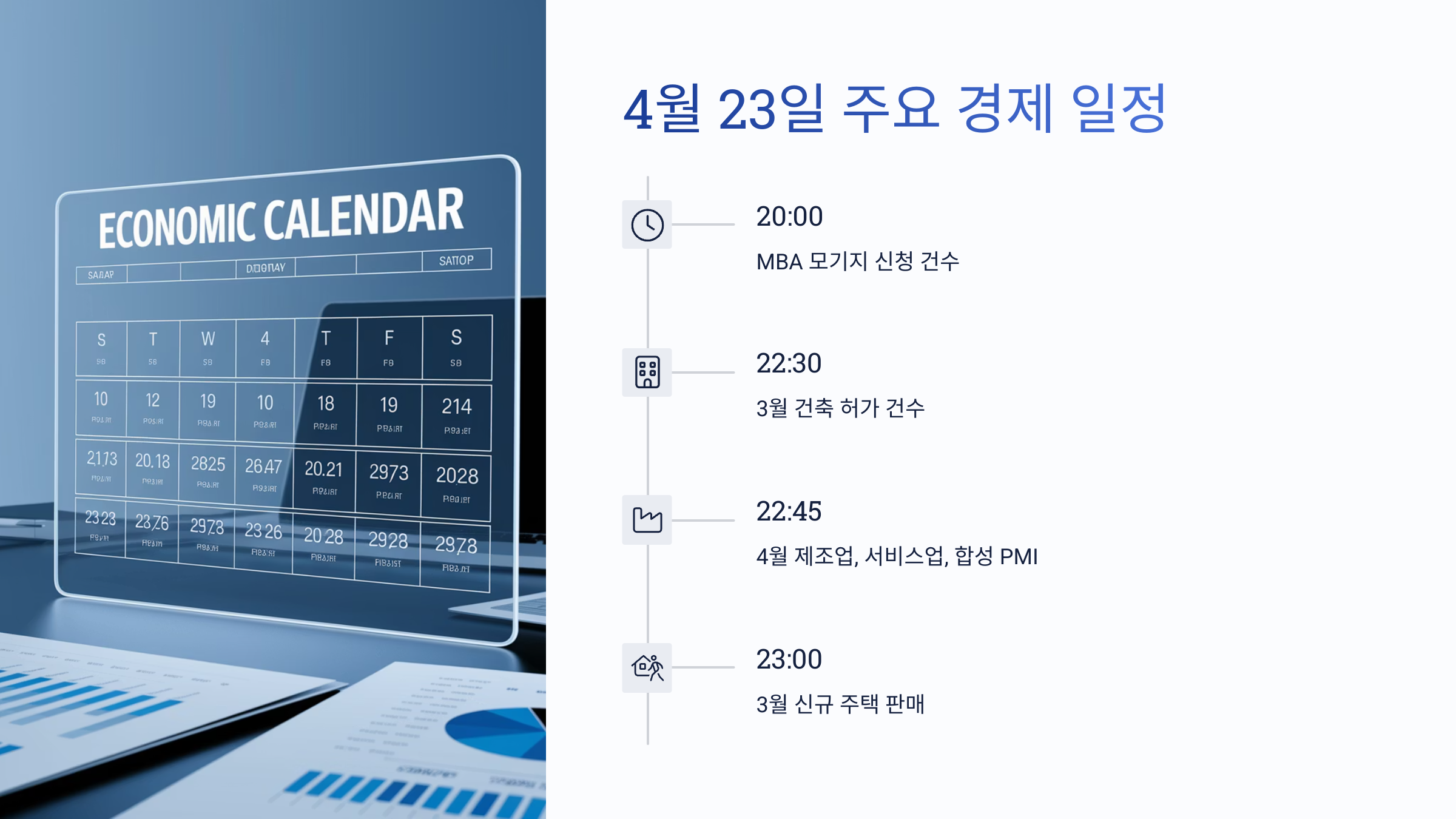 투자자들이 눈여겨봐야 할 4월 23일의 미국 주요 경제 지표 발표 일정입니다.