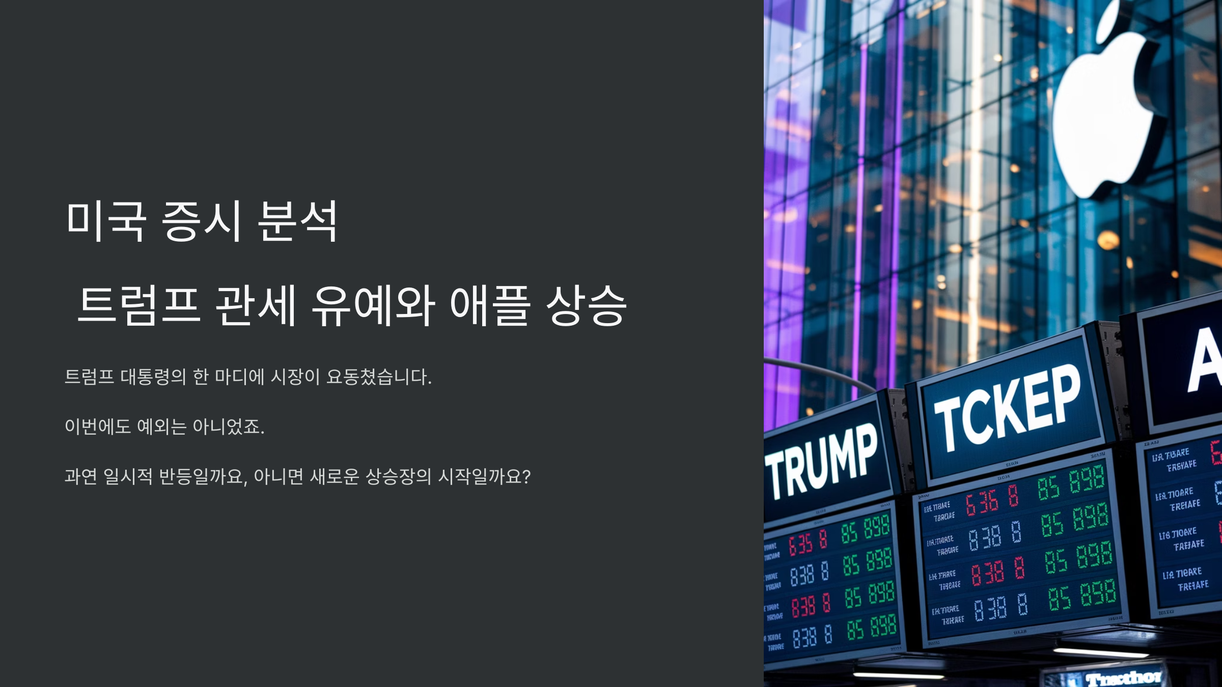 애플이 날아오르고, 트럼프가 또 한 번의 깜짝 발표를 했더라고요.