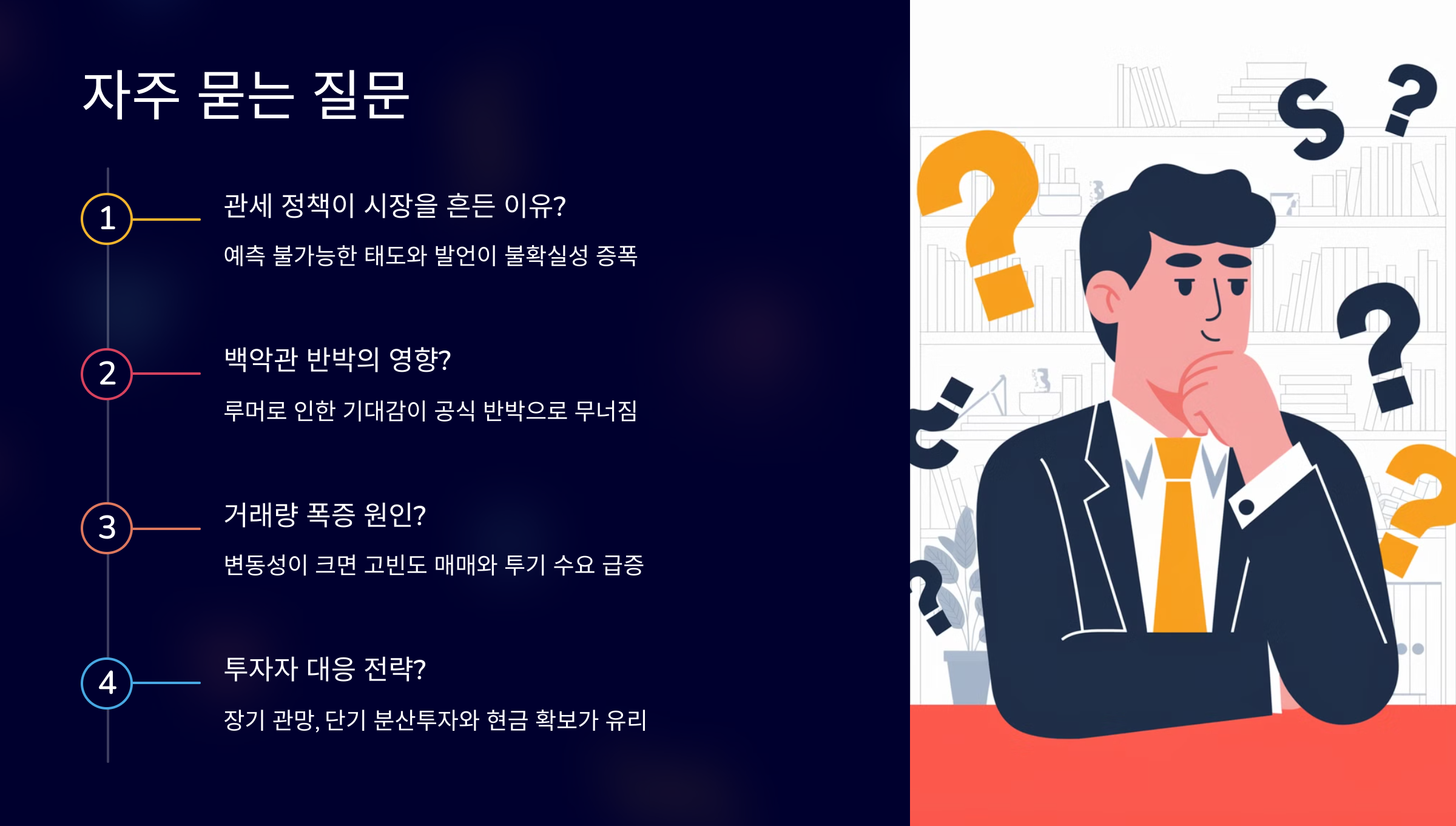 오늘 정리한 내용처럼, 금융시장은 정치적 변수에 따라 민감하게 반응합니다.