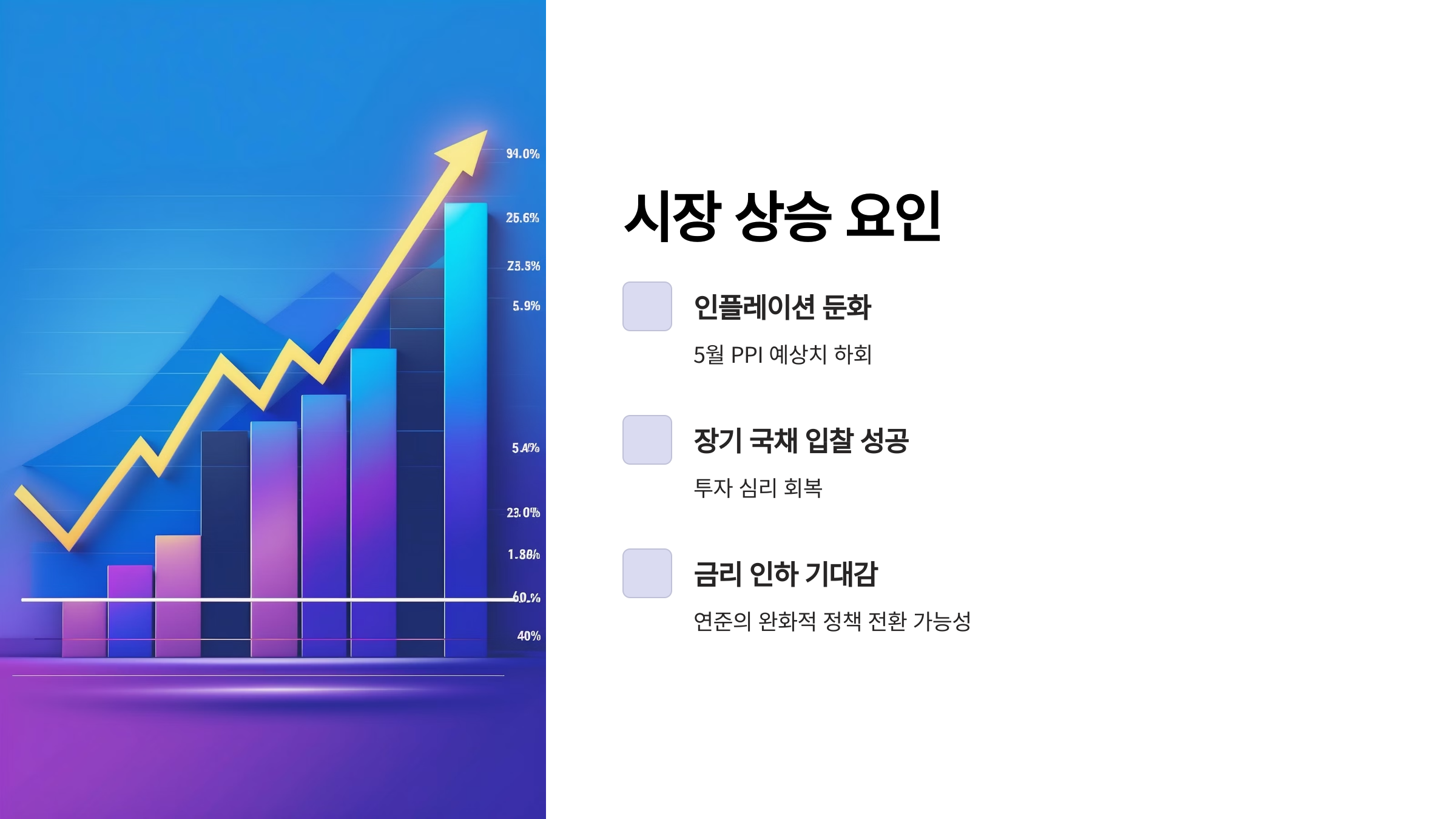 이는 인플레이션이 둔화하고 있다는 신호로 받아들여졌고, 금리 인하 기대감이 커졌습니다.