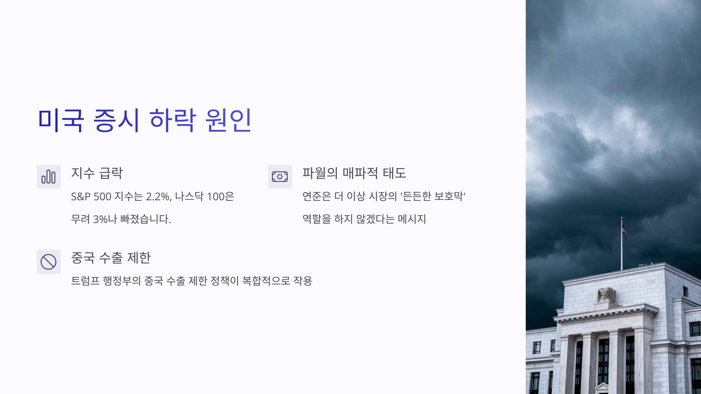 그 중심엔 파월 의장의 단호한 발언과 반도체 규제라는 이중 폭풍이 있었죠.
