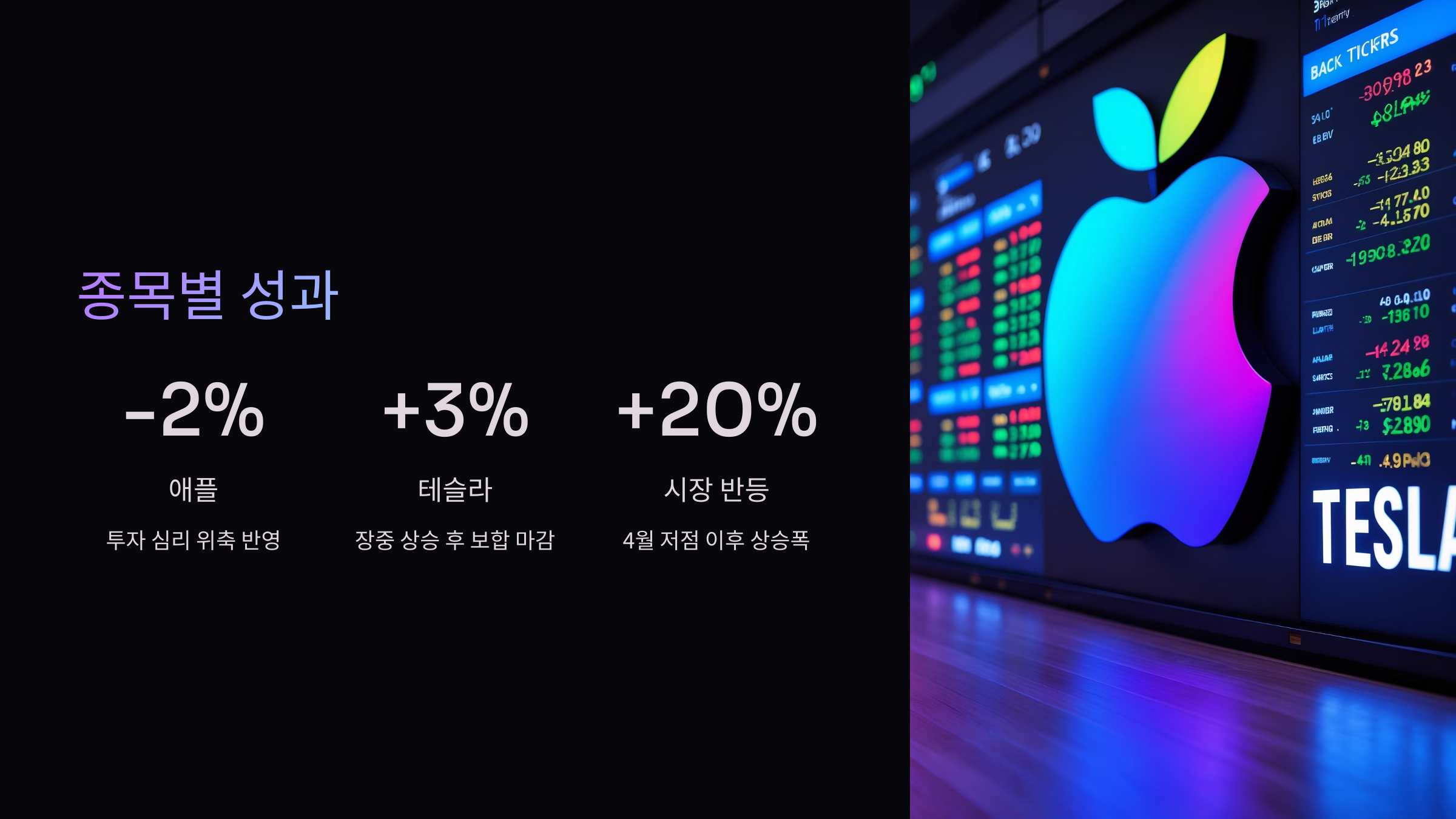 - 테슬라(Tesla): 장중 +3% 상승 → 보합 마감