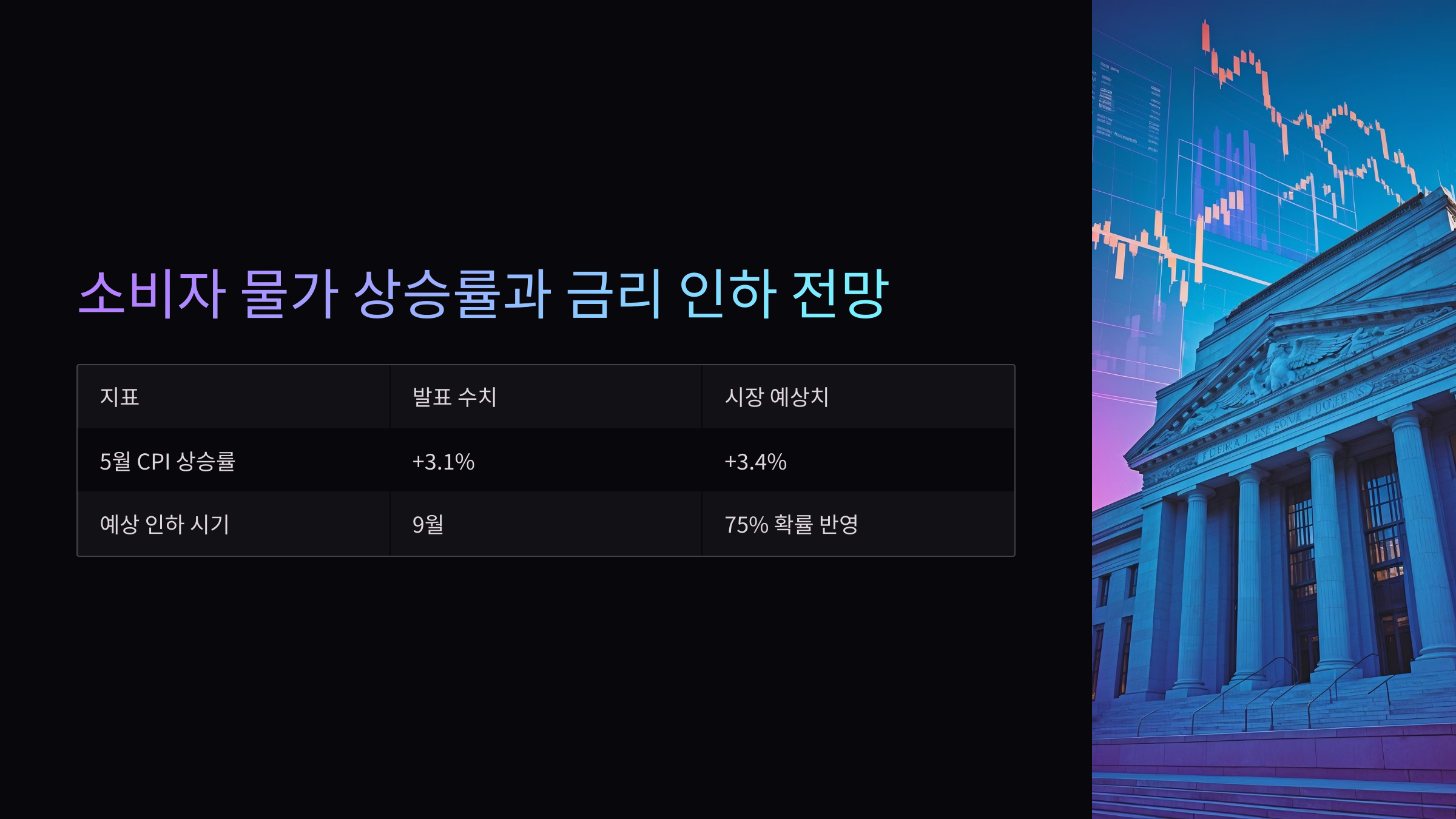 5월 소비자물가지수(CPI)는 시장의 예상치를 밑돌며 연준의 금리 인하 기대감을 자극했습니다.