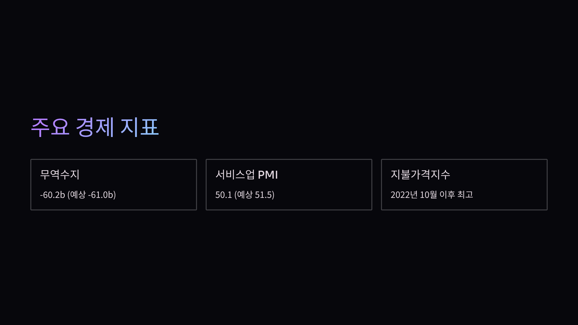 | 23:00 | 지불가격지수 | 2022년 10월 이후 최고 | - | - | 물가 압력 확대 가능성 |