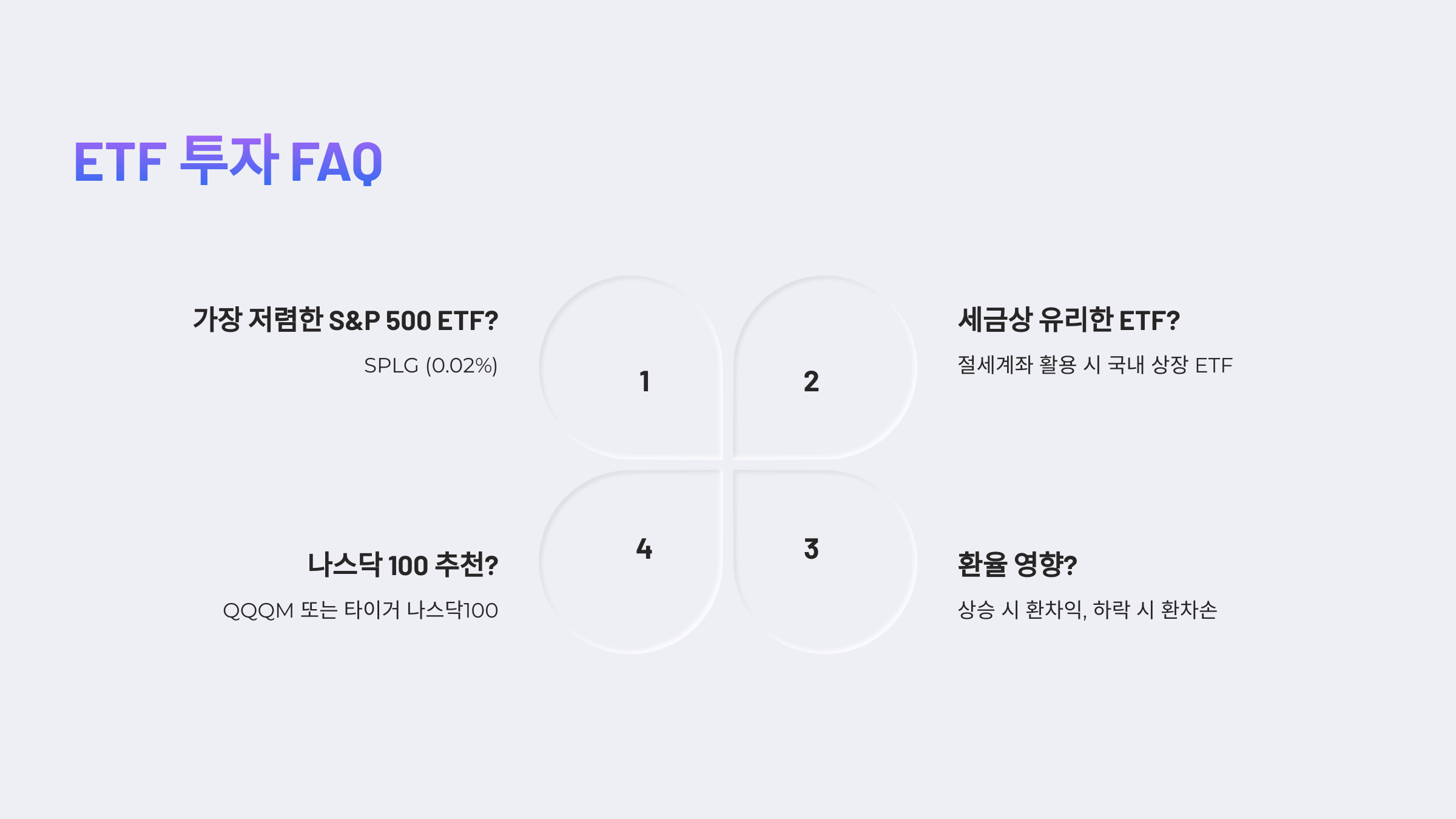 - 나스닥 100: QQQ(0.20%) vs QQQM(0.15%) → QQQM 유리