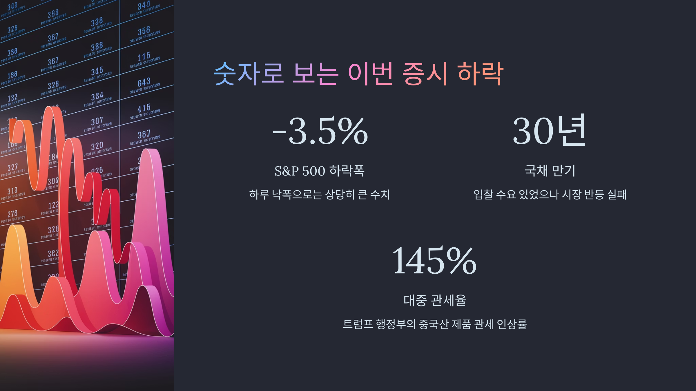 2025년 4월 9일, 미국 증시가 또 떨어졌다는 소식 때문이었죠.