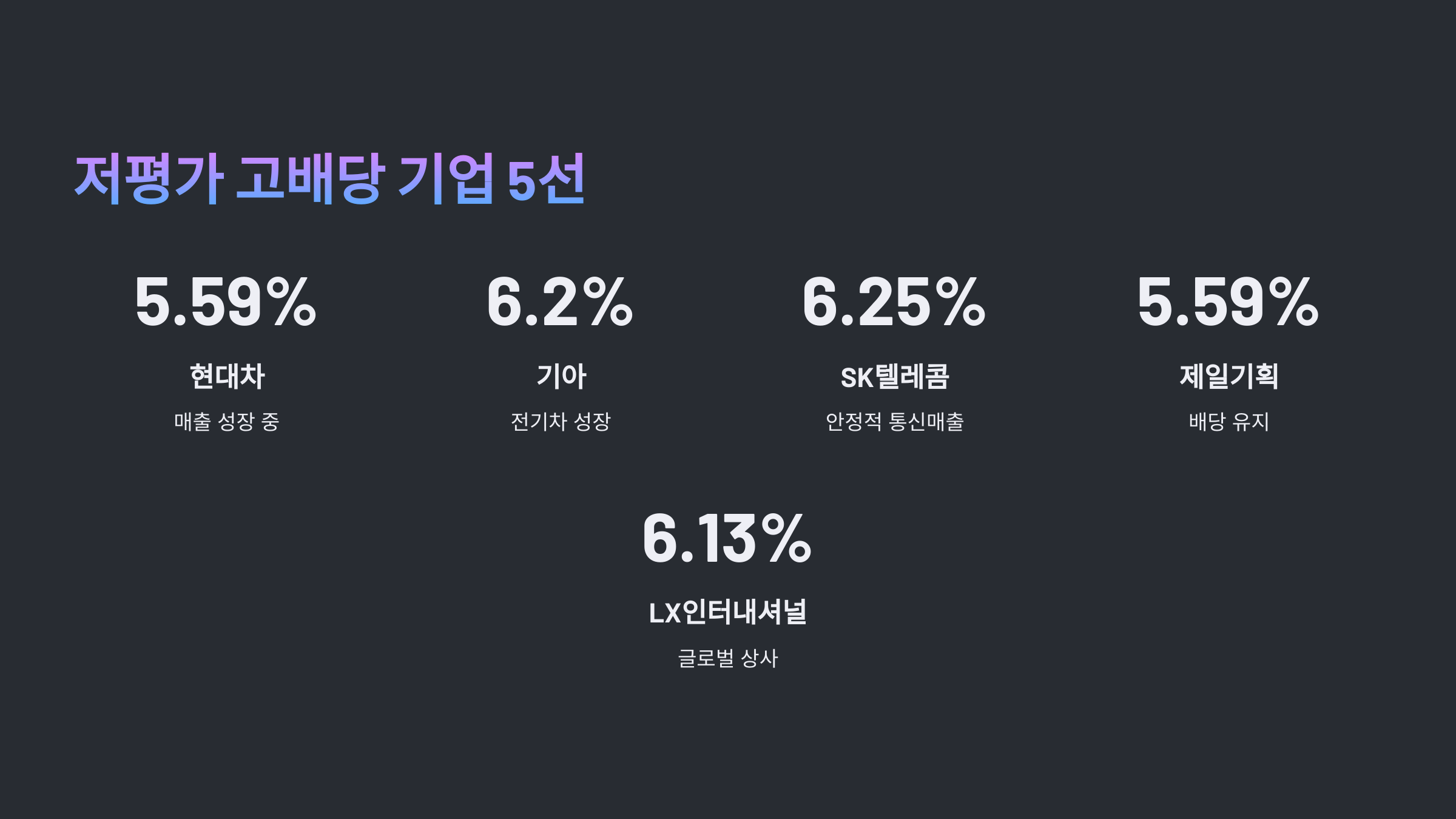 | 저평가 배당 우량주 TOP 6: 금리 인하 시대의 고배당 전략 (0) | 2025.07.11 |