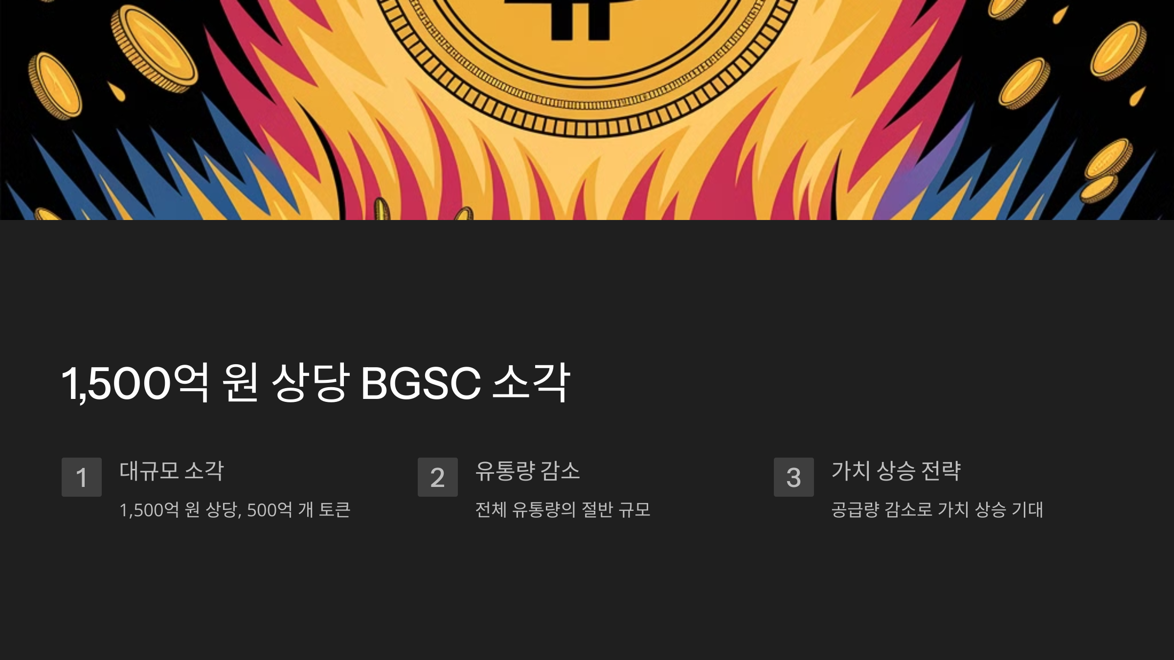 바로 1,500억 원 상당의 BGSC를 소각하겠다는 계획인데요. 이 수치는 현재 시세 기준이며,