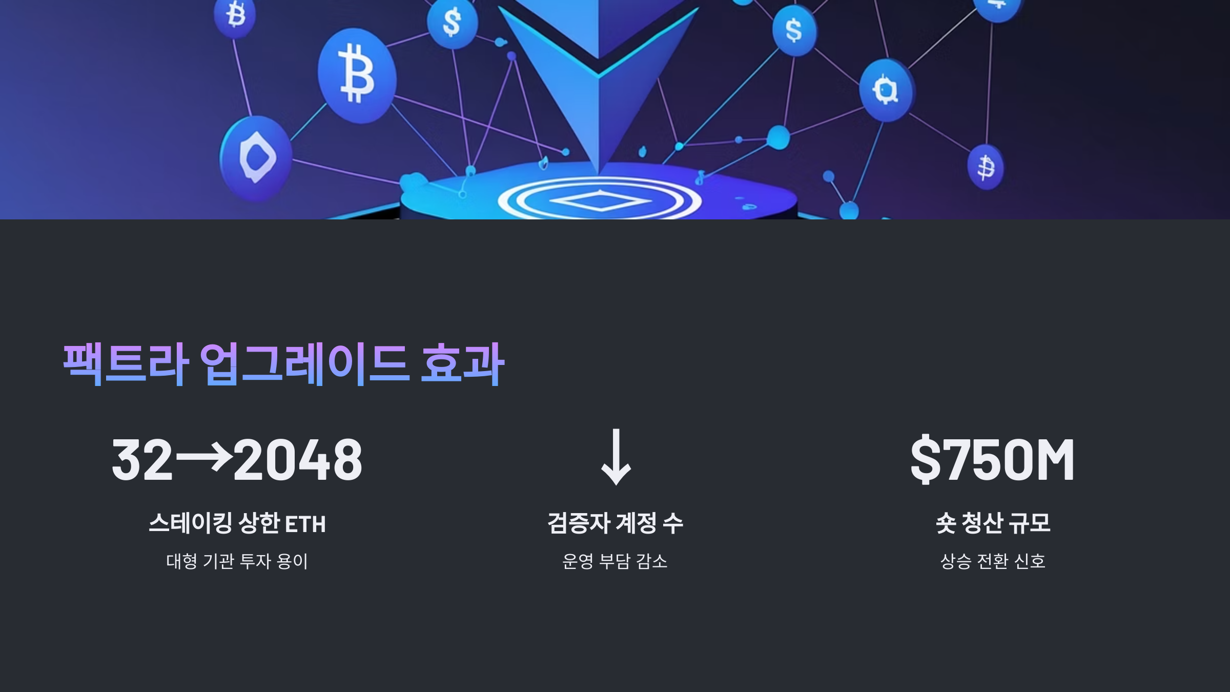 - 스테이킹 상한: 32ETH → 2048ETH