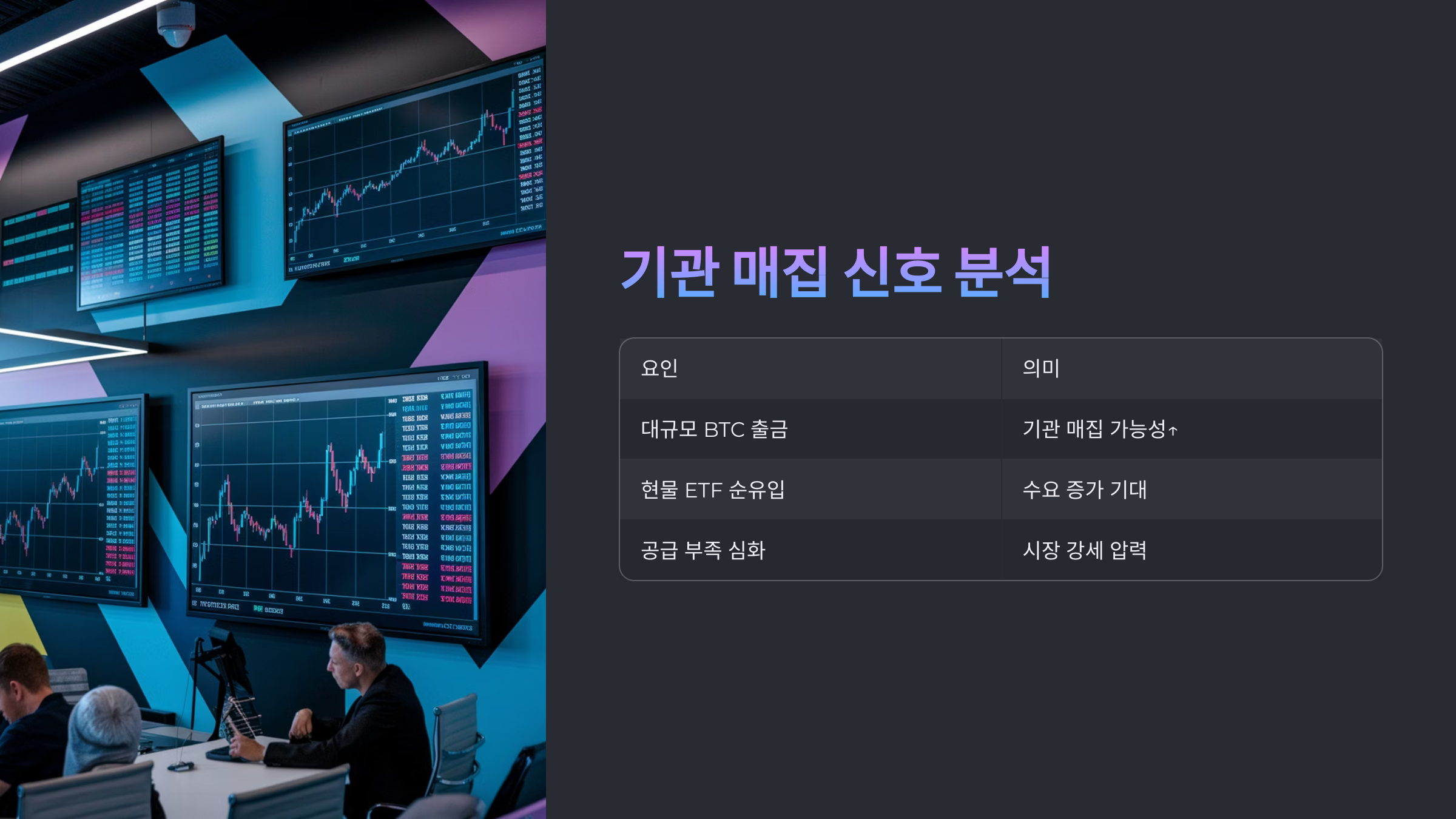 기관이나 고래 투자자들이 장기 보유를 위해 거래소에서