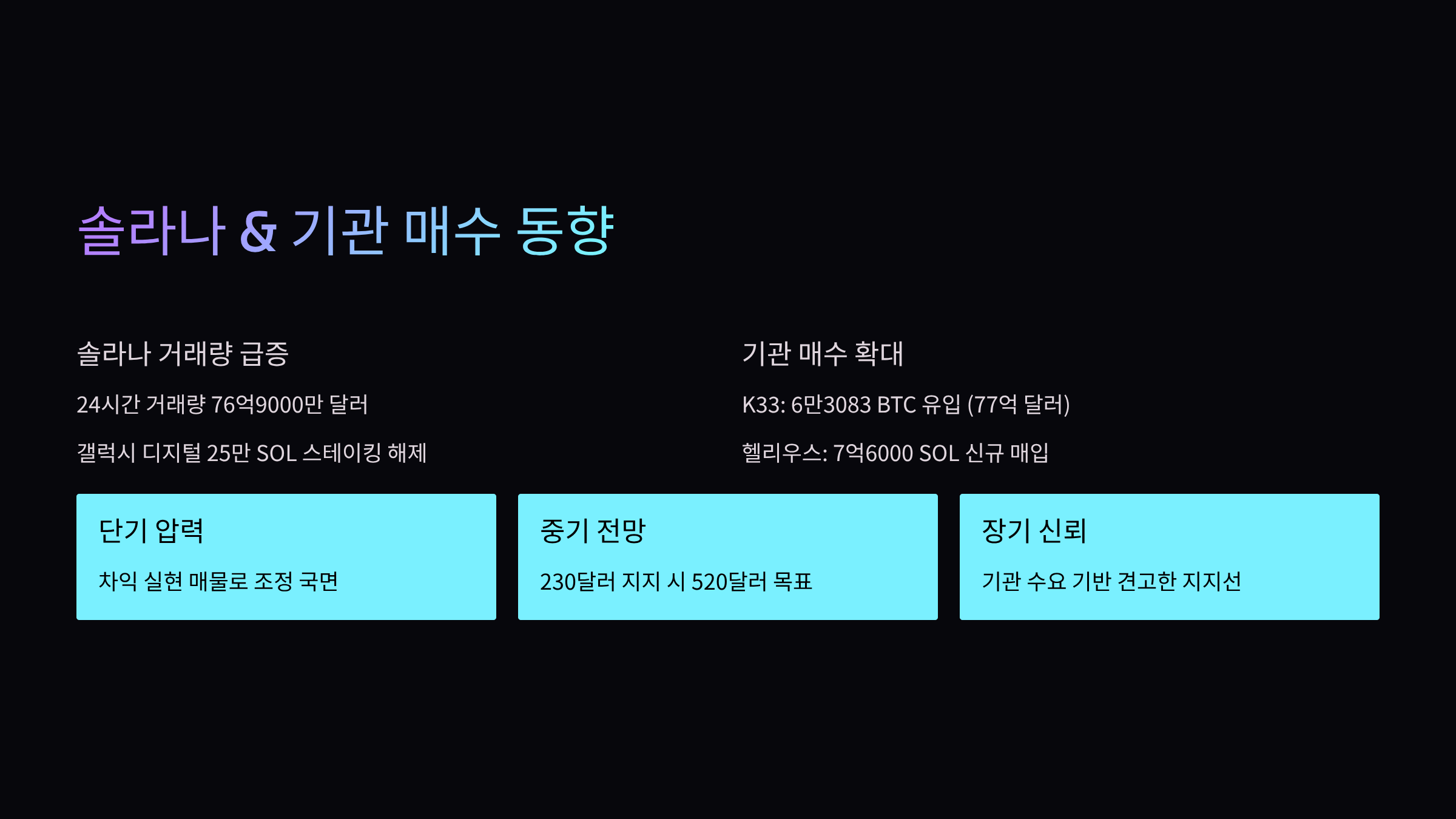 - 솔라나 거래량 급증과 조정 국면 분석