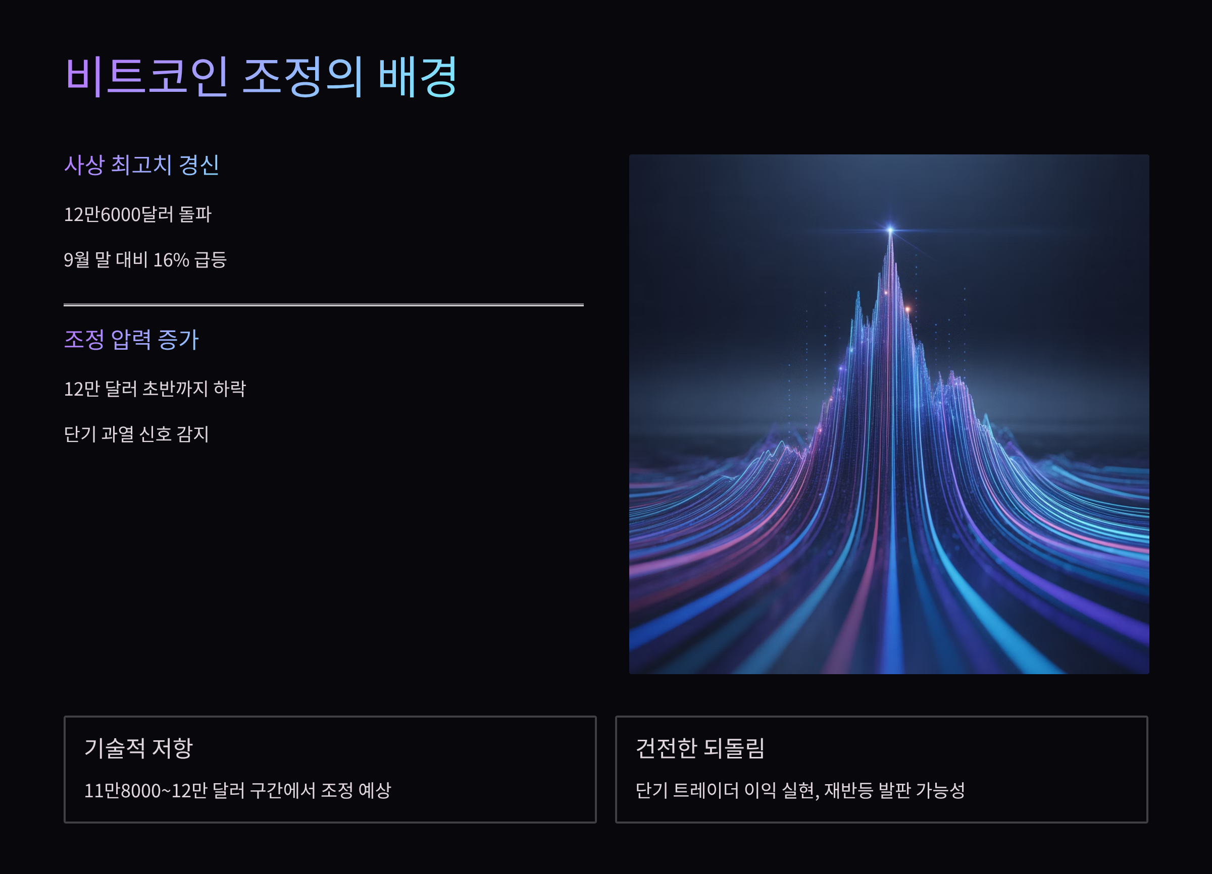 - 단기 조정 구간: 11만8천~12만 달러