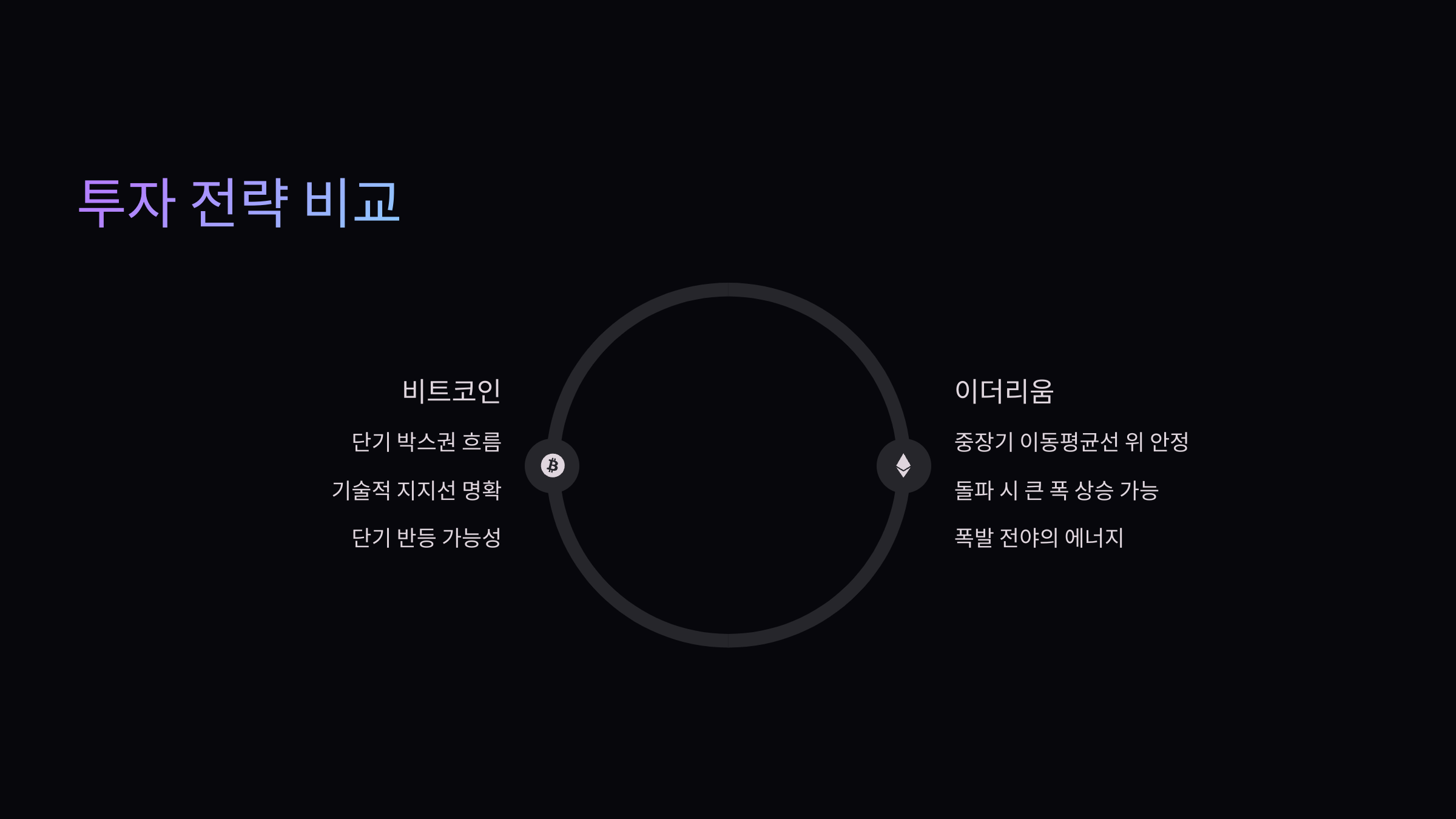 - 비트코인은 단기 박스권 흐름과 기술적 지지선이 명확하며,