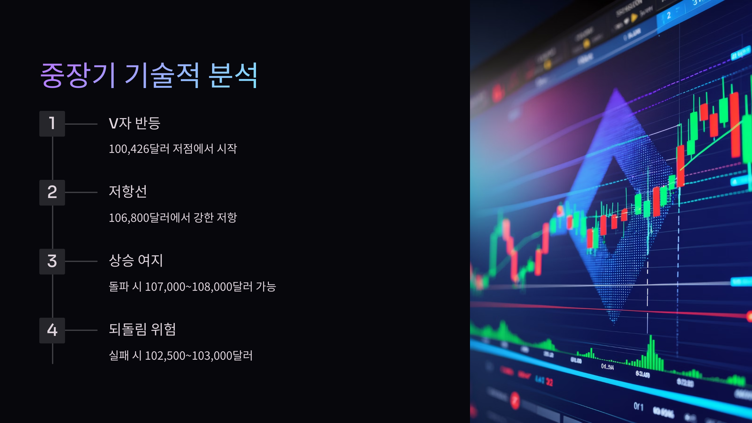 | 106,000달러 돌파 | 단기 랠리 가능성 | 매수 포지션 고려 |