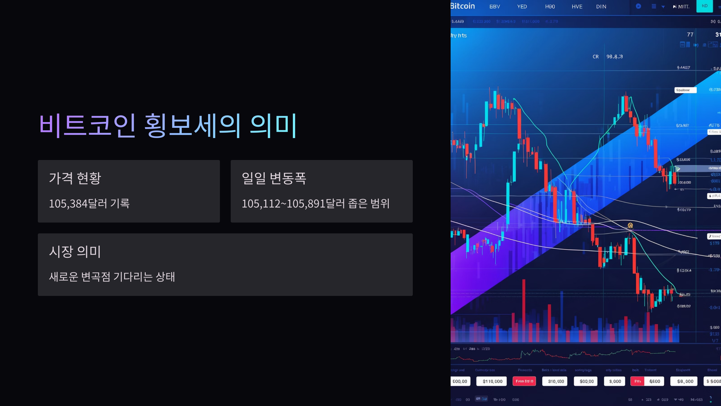 이번 글에서는 최근의 횡보 흐름 속에 감춰진 시장의 방향성과 기술적 시그널을 집중 분석해보려 합니다.