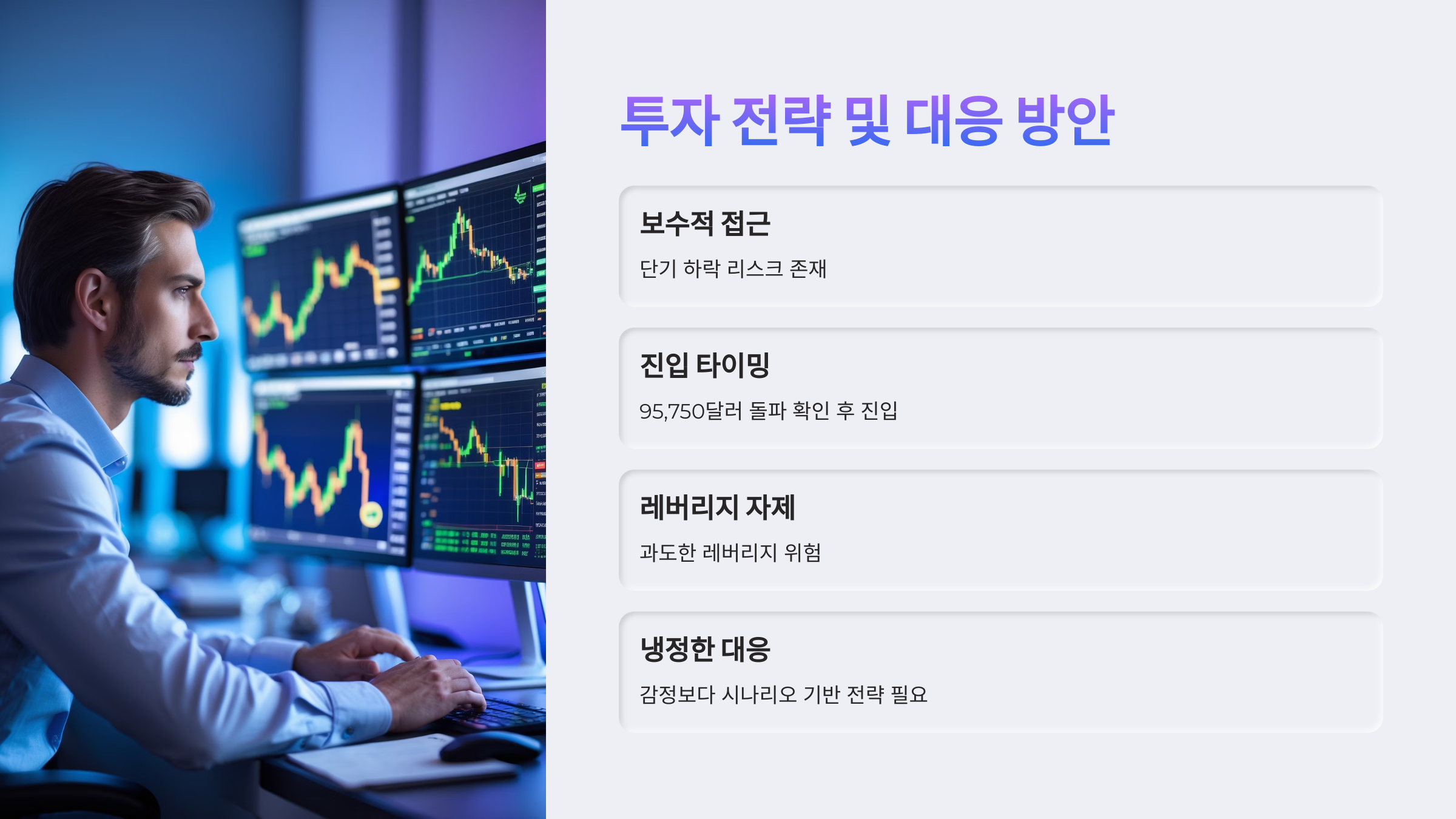 결국 시장의 키는 95,750달러 구간이 쥐고 있어요.