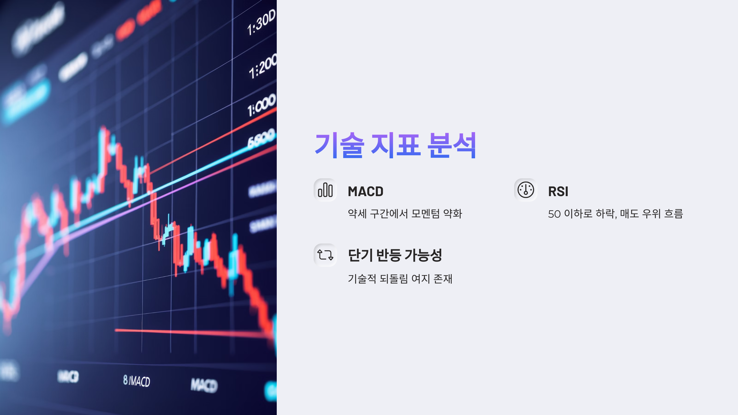• MACD: 약세 구간에서 모멘텀 약화