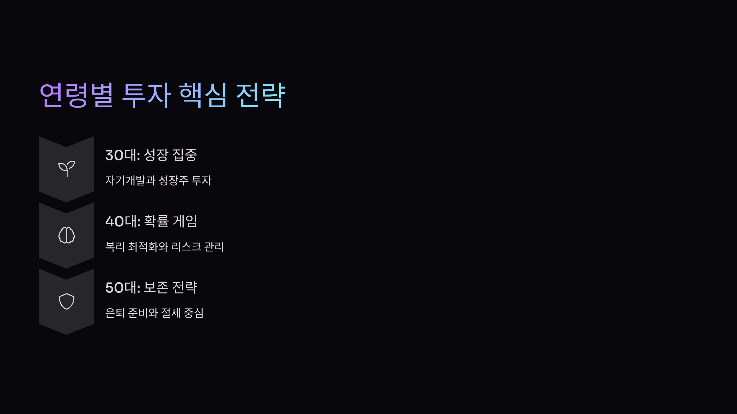 오늘은 각 연령대별 핵심 투자 전략을 정리해드릴게요.