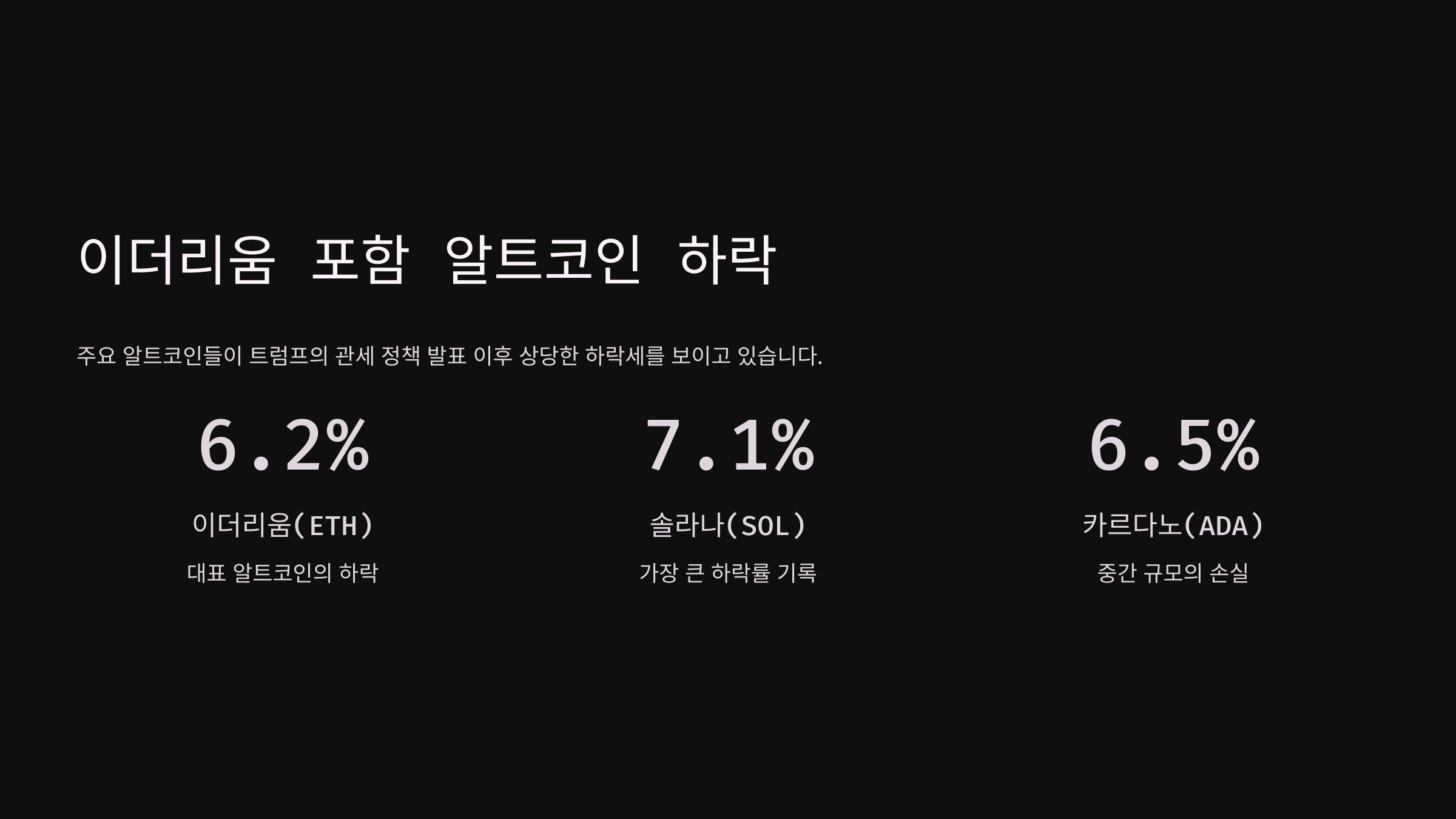 오늘은 이 관세 이슈가 왜 알트코인 시장을 흔들었는지,