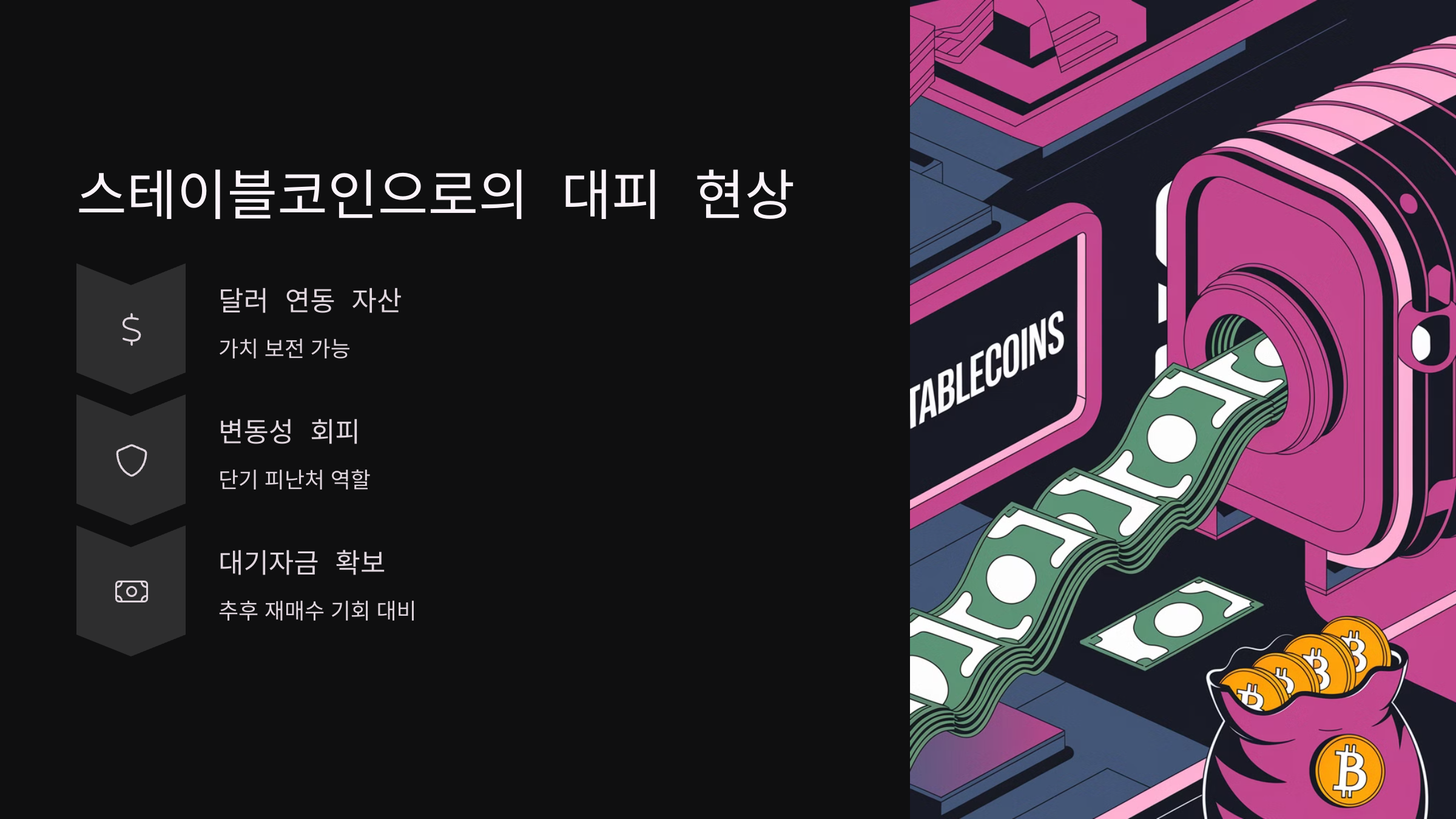 큰 시기에는 단기적인 피난처로 스테이블코인이 선호되죠.