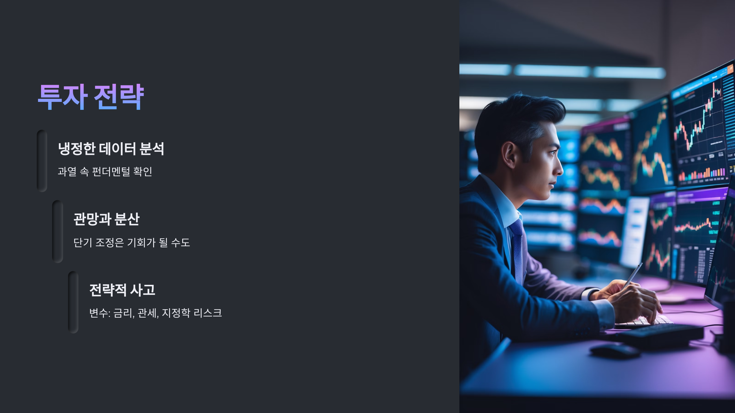 지금은 관망과 분산, 그리고 전략적 사고가 필요한 시점입니다.