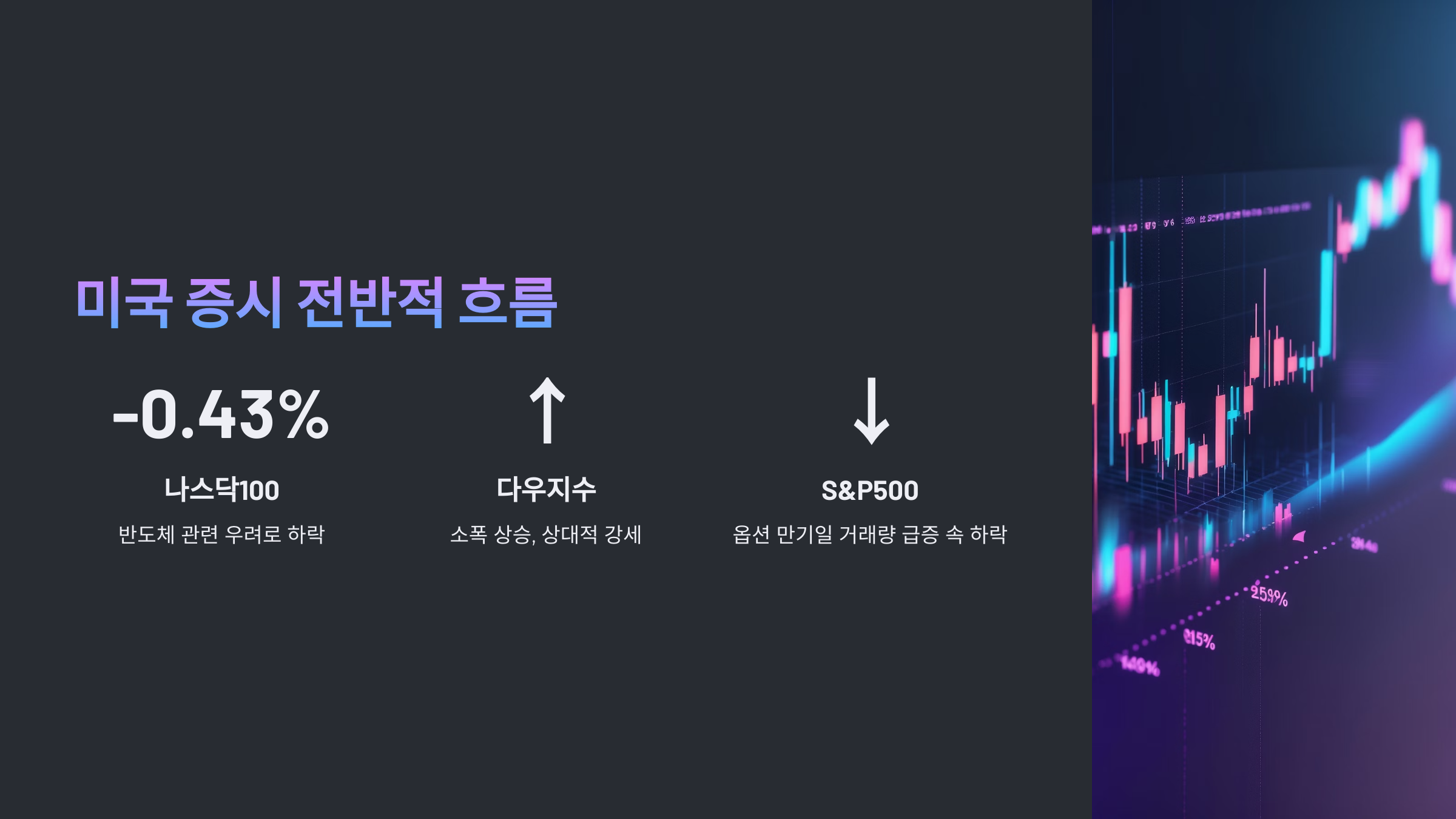 특히 나스닥100은 반도체 관련 우려로 인해 -0.43% 하락하며 시장을 끌어내렸습니다.