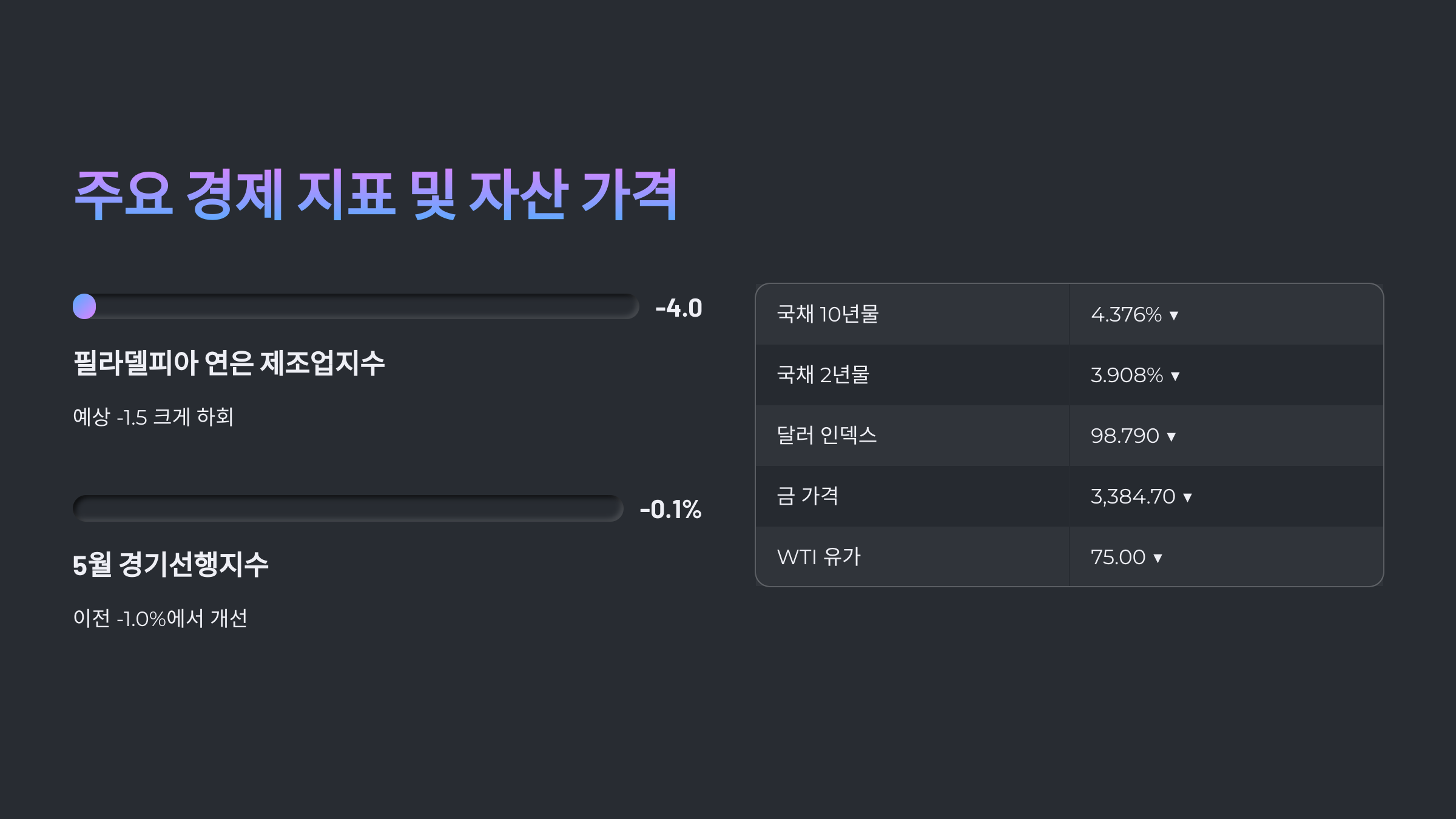 - 국채, 달러, 원자재 및 경제지표 요약