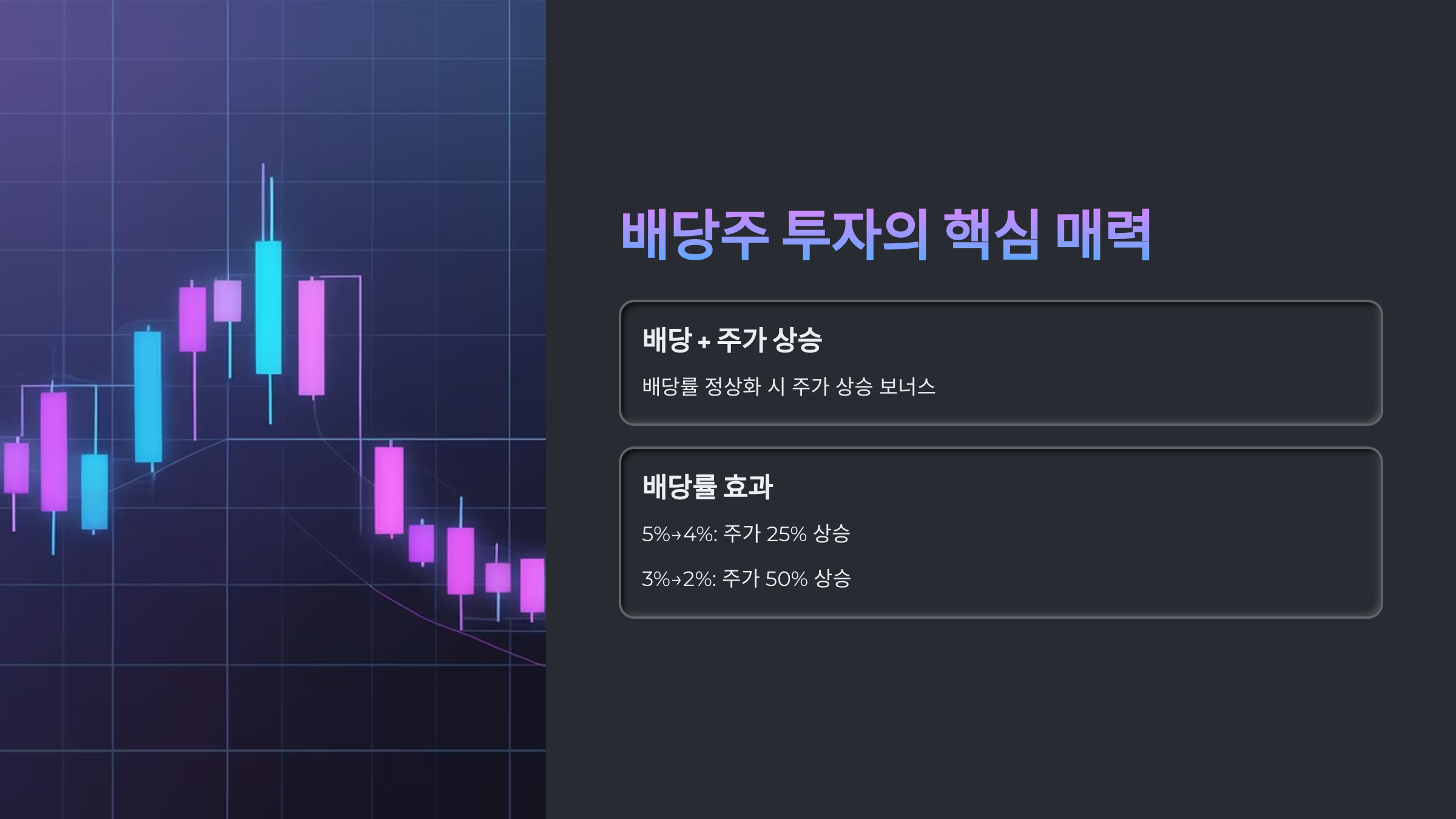 이유는 단순합니다. 배당률이 낮을수록 주가 상승 여력이 더 크기 때문입니다.