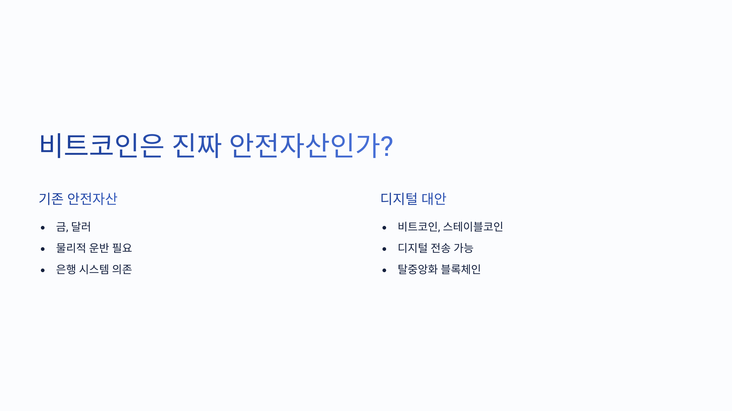 과거에는 금이 그 역할을 했지만, 이제는 비트코인이 그 대안으로 부상하고 있어요.