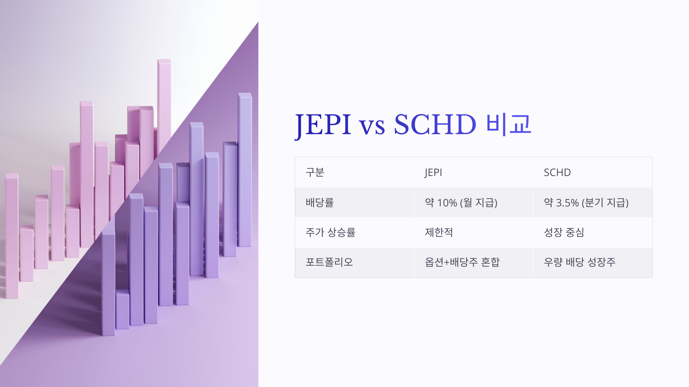| JEPI | 약 10% | 안정적 | 배당 변동성 적고 옵션 전략 개선형 |