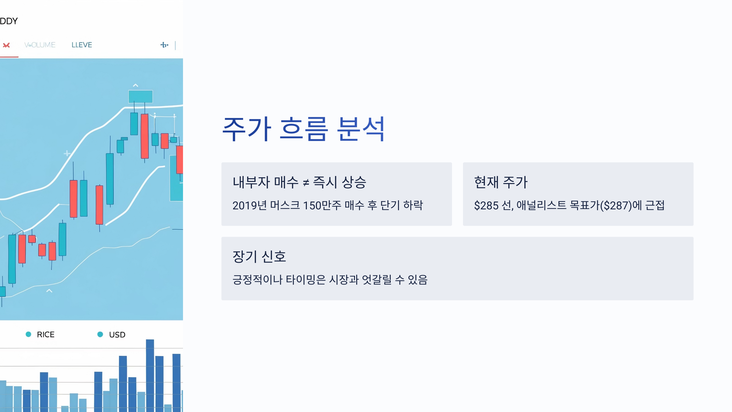 현재 테슬라의 주가는 285달러 선에서 움직이고 있으며,
