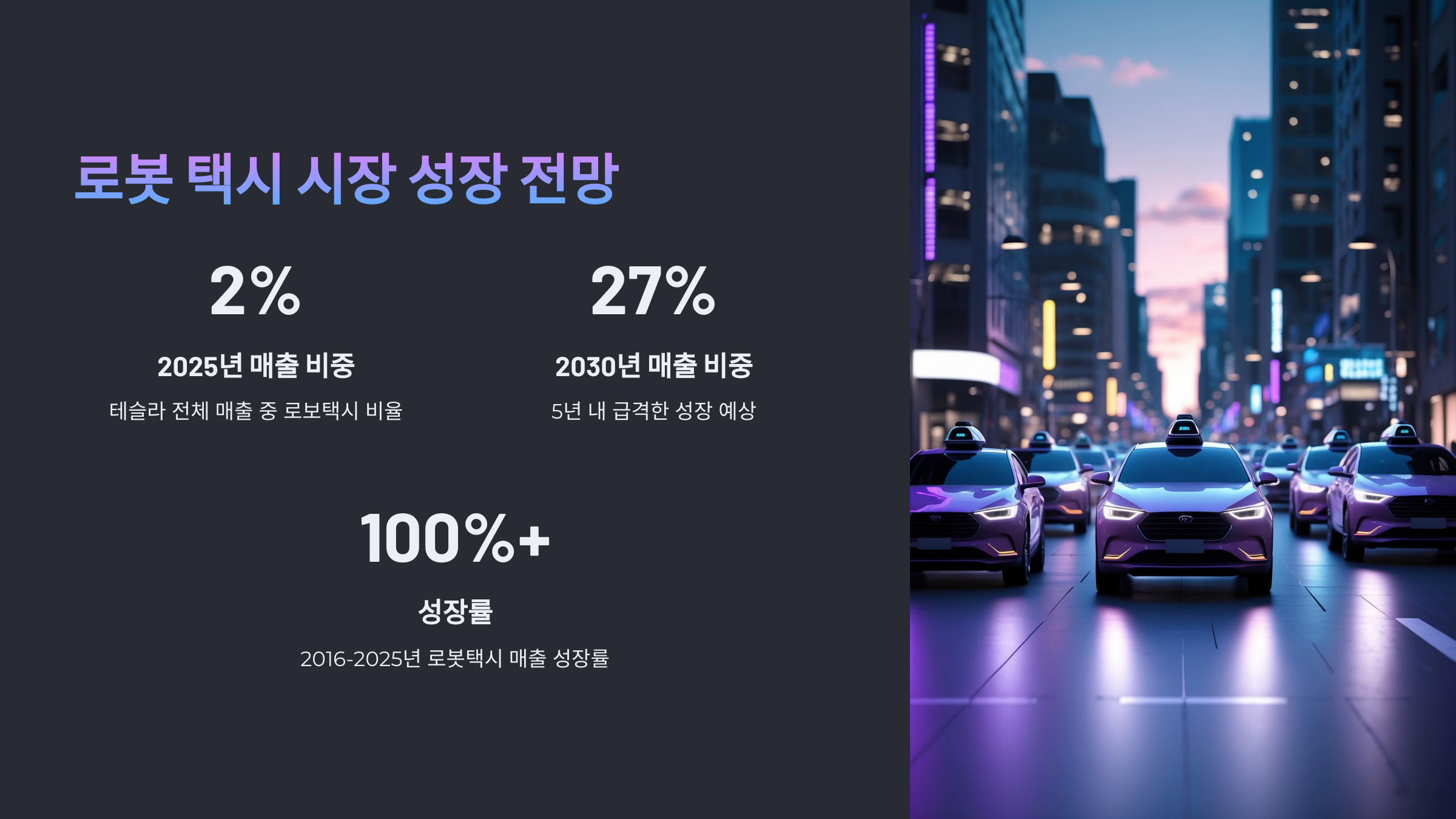 • 2016-2025년 로봇택시 매출 성장률: 100% 이상