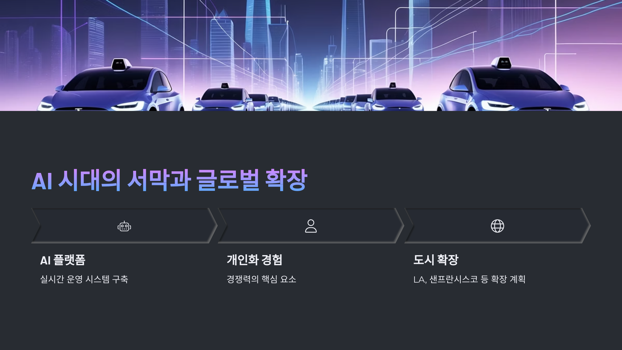 실제 경제 모델과 플랫폼으로 수익을 만들어가는 ‘AI 모빌리티 시대’의 서막이라 할 수 있습니다.