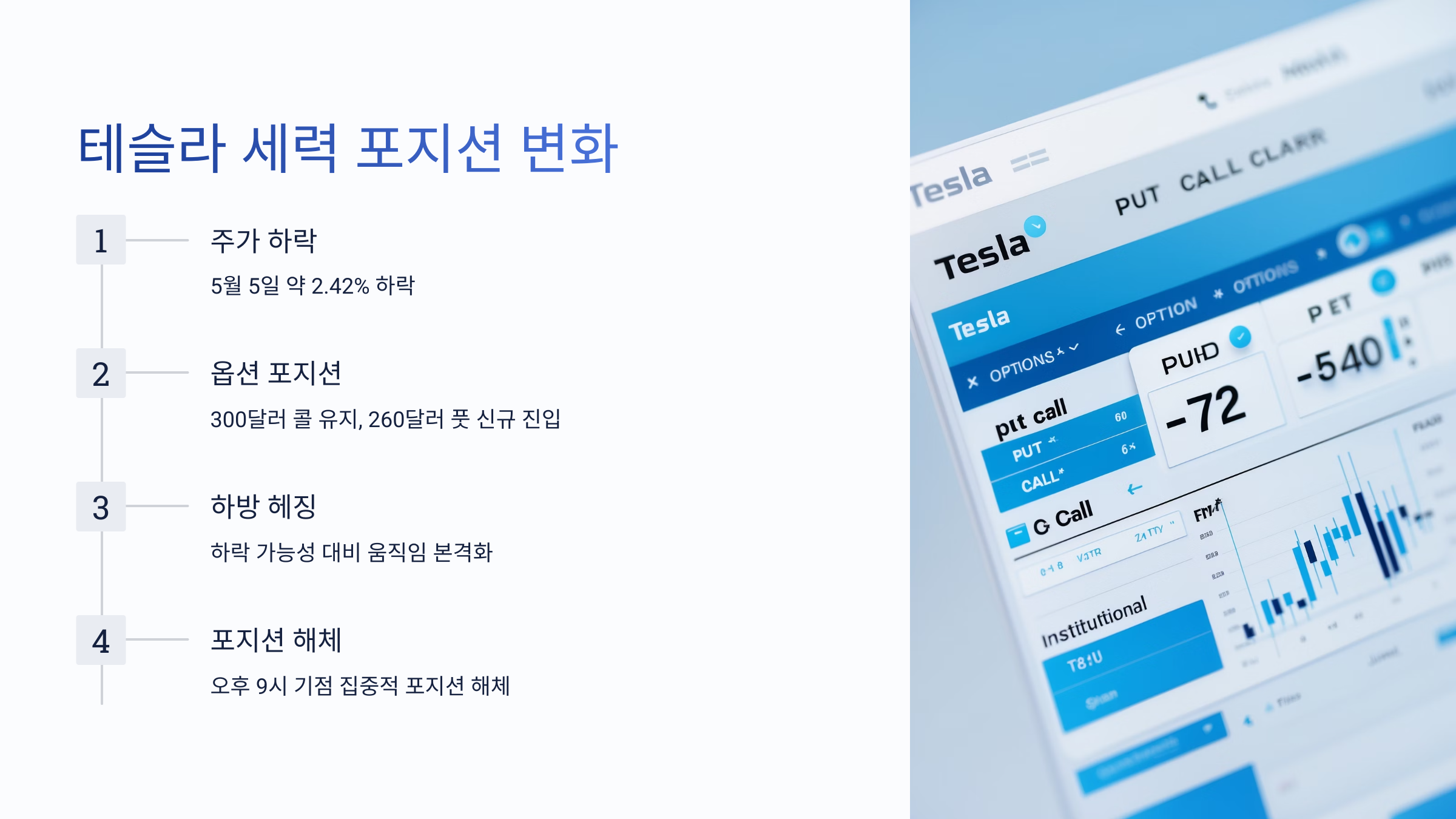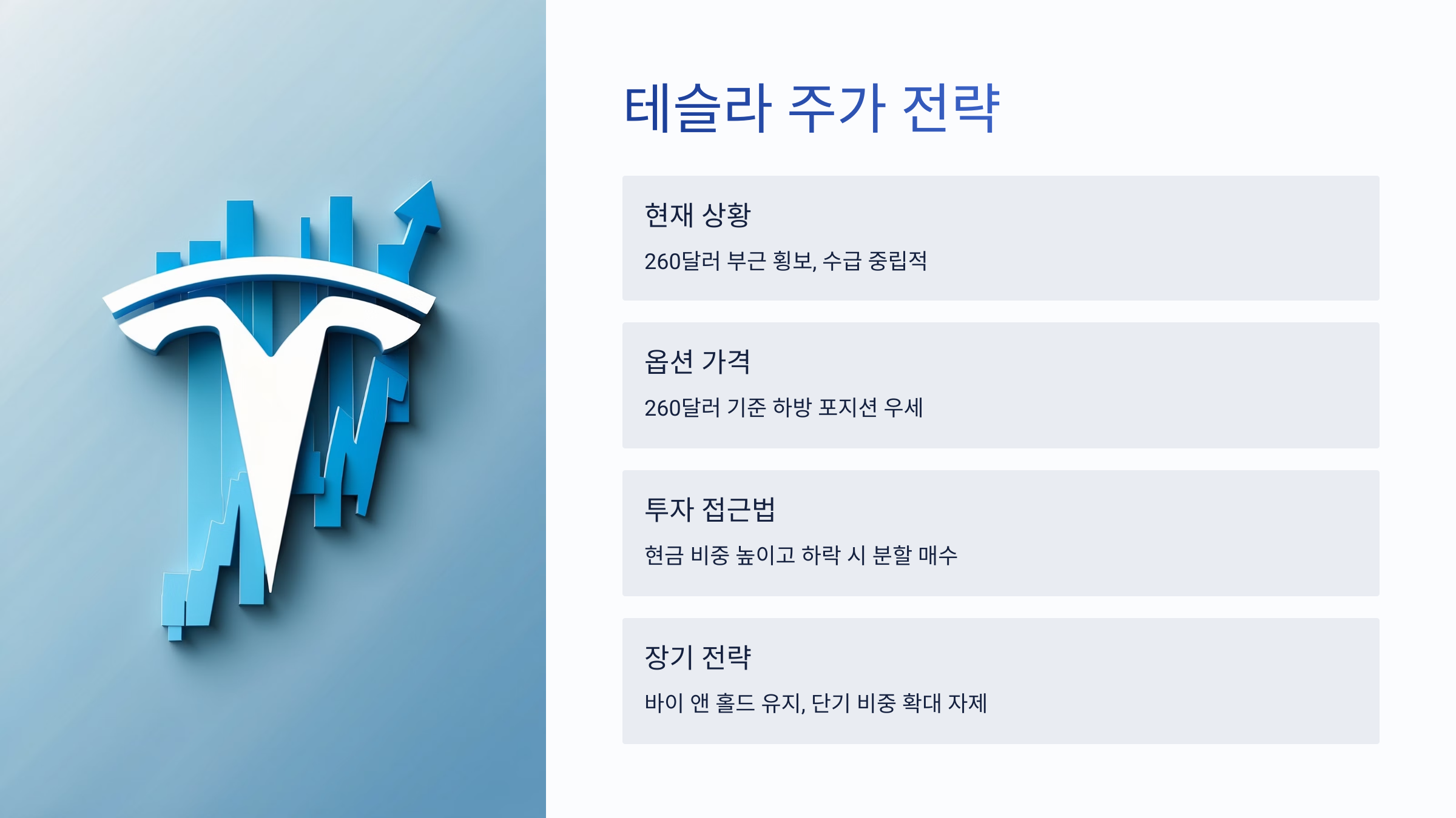 - 테슬라 옵션 가격: 260달러 기준으로 하방 포지션 우세