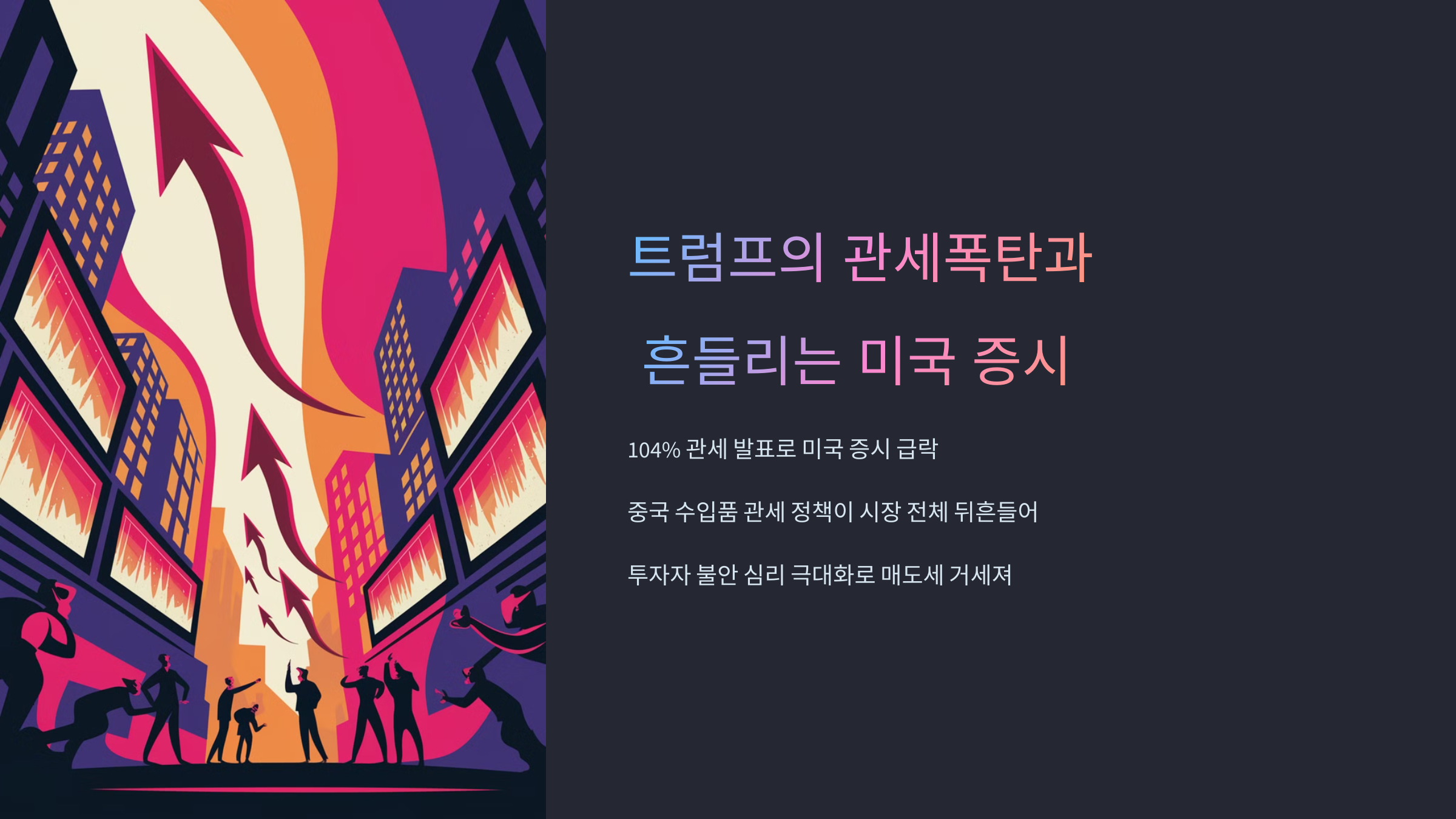 | 중국 수입품 104% 관세 | 시장 급락 및 무역 갈등 심화 |