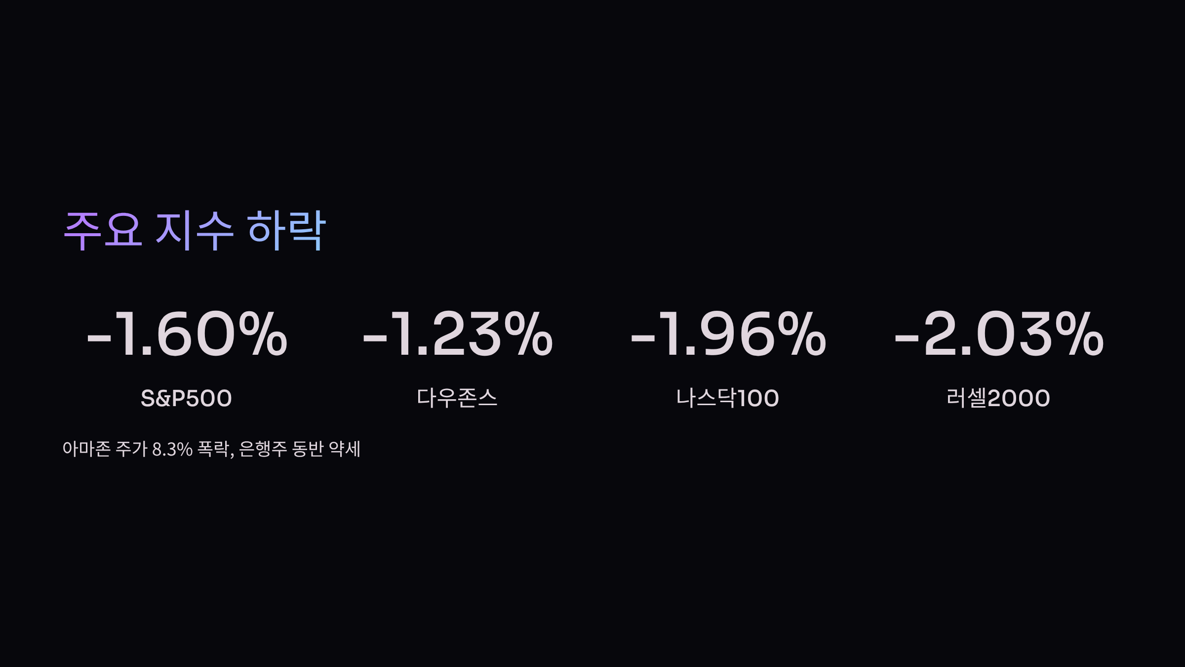 아마존의 부진한 실적 전망으로 주가가 8.3% 폭락했고,