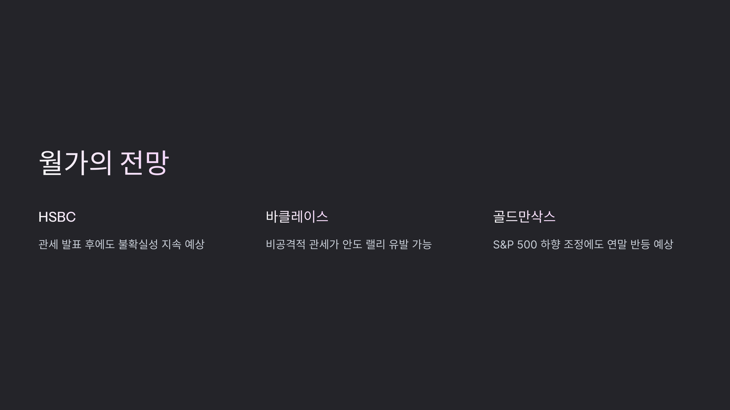 월가의 분위기는 복잡해요. HSBC, 바클레이스, 골드만삭스